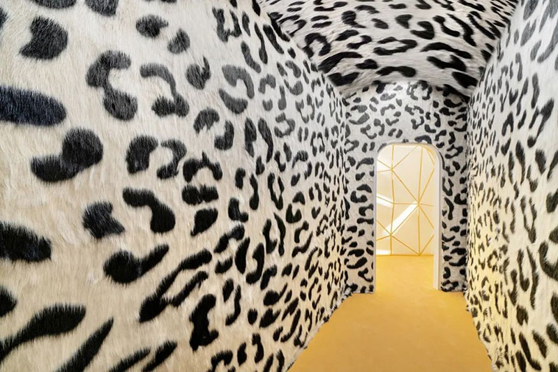 NATURALIST通廊以逼真的皮毛斑纹图案营造自然之感。还原猎豹的姿态和皮毛触感也是卡地亚猎豹珠宝的精髓所在,独到的“皮毛镶嵌”工艺正是因其而生。