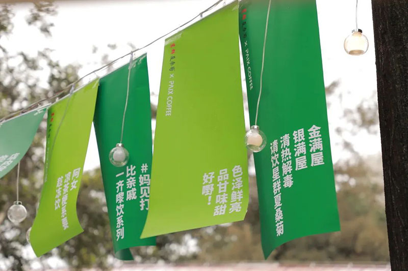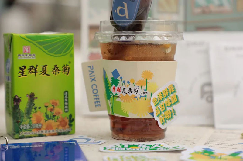 白云山星群作为广府凉茶非遗文化传承之一,在本次的快闪里以“跨界、创新、传承”的视觉,通过“非遗跨界融合”的模式,将广府凉茶星群夏桑菊和PAIX COFFEE有机结合,以更时尚的方式将传统非遗带到当下年轻人的生活中。