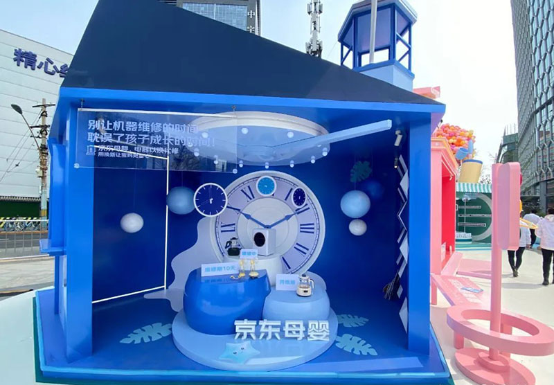 入口第一个打卡地是京东的“喂养电器”,小宝宝的电器坏了不用急,京东母婴喂养电器以换代修,贴心服务陪伴宝宝成长。旁边粉色的小屋是“尺码随心换”,逛京东,就可以选购尺码随心换的纸尿裤。