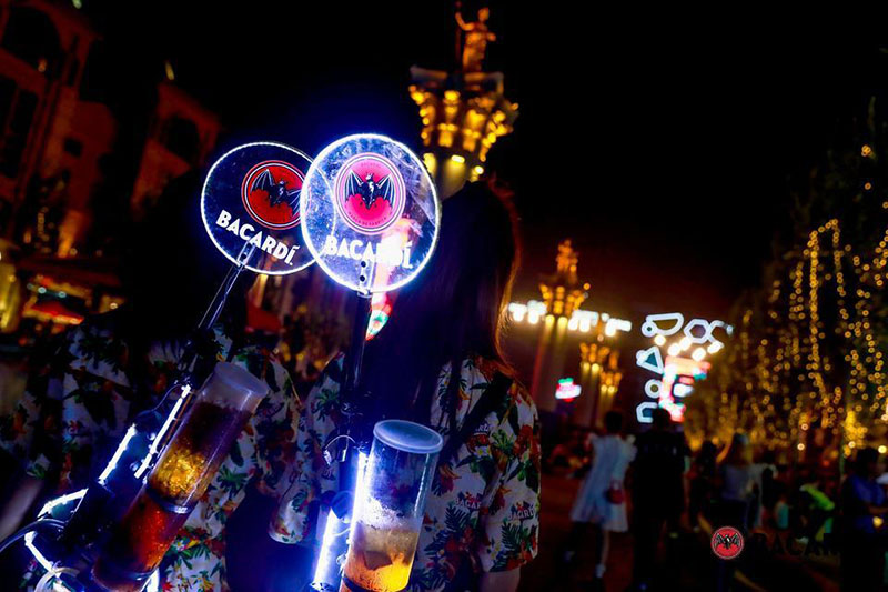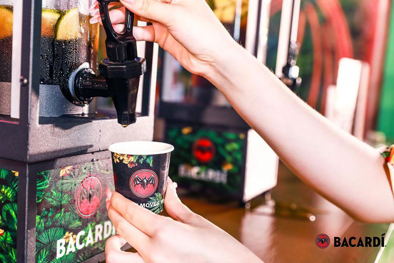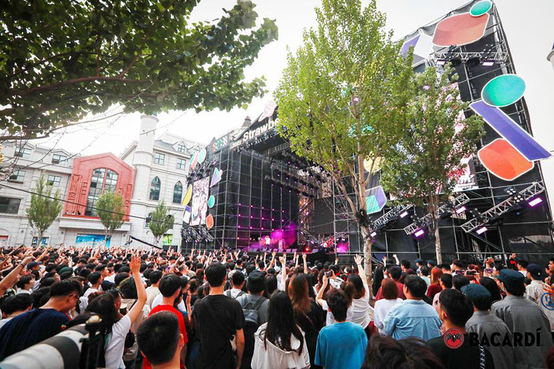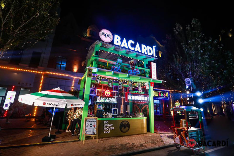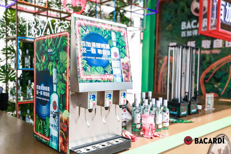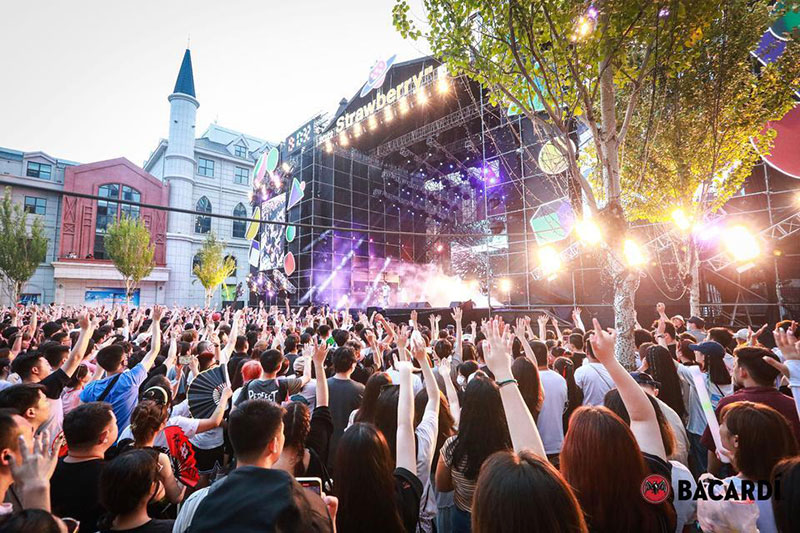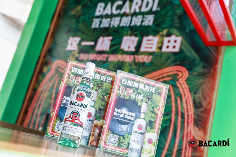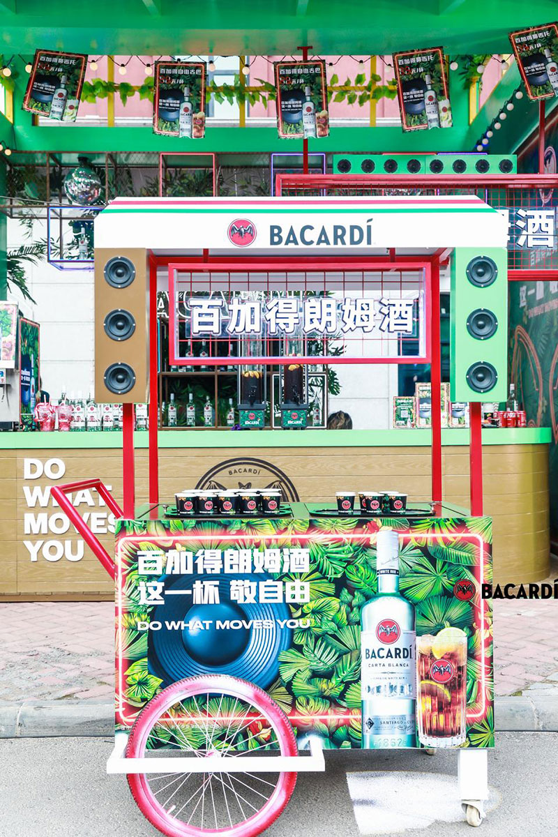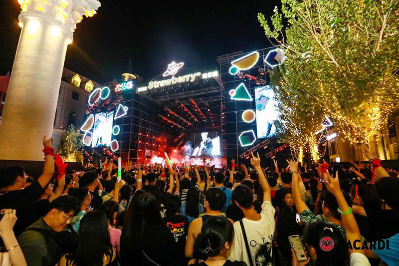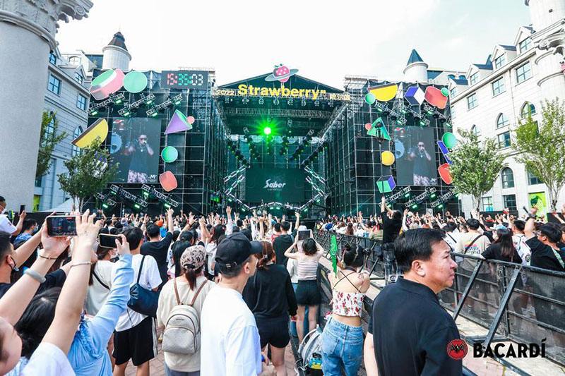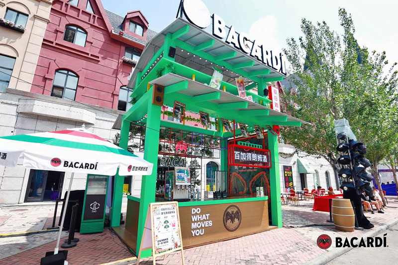 2022草莓音乐节(哈尔滨站)-百加得朗姆酒以「这一杯敬自由」为主题设置了百加得朗姆酒形象展台、百加得产品展示区、合影互动区、调酒区、试饮区、售卖区、表演区等。热辣舞蹈年轻时尚,符合音乐节到场观众审美,与草莓音乐节得热烈氛围相呼应!