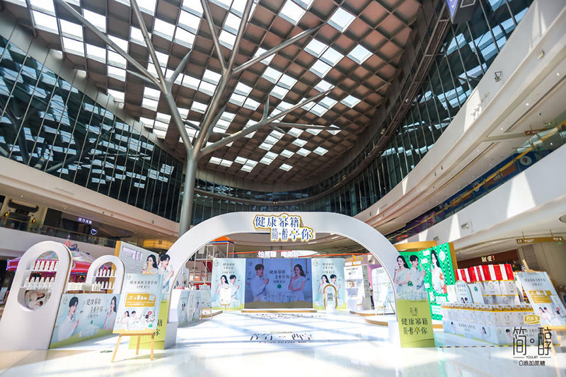 “健康幂籍 简醇亭你”主题快闪活动现场设置三关游戏,只要完成三关游戏,并到打卡区写下自己想说的话为喜爱的TA打call,手持产品,拍照转发朋友圈,凭借印章即可到抽奖区区域抽奖。