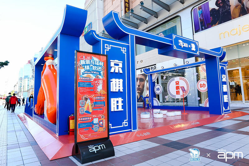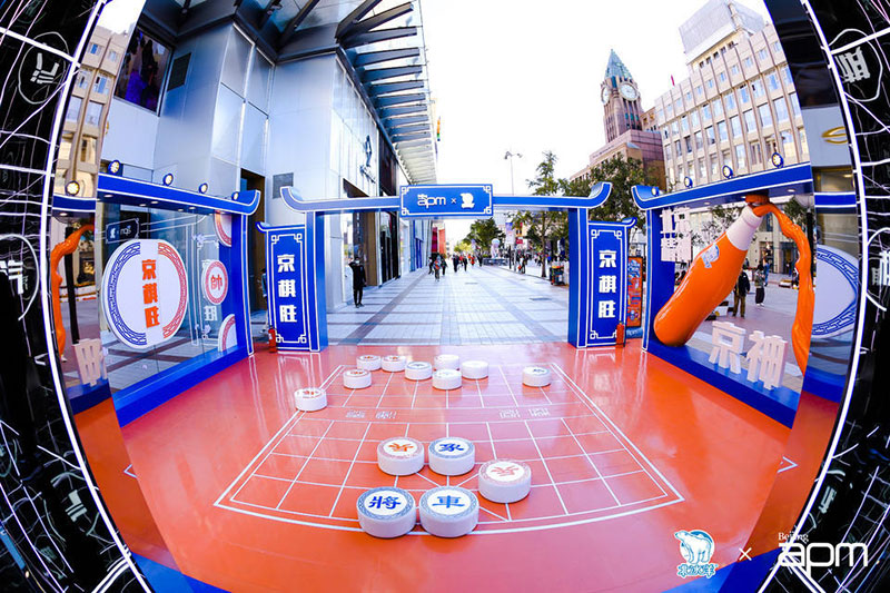 北京apm联手北冰洋倾情打造“京棋胜”展览,以北冰洋创办85周年为契机,让经典品牌与潮流文化激情碰撞,复苏最具“京味儿”的童年回忆。“京棋胜”主展馆采用北冰洋的传统配色,将桔色与蓝色完美搭配,以冷暖色调的美学交汇,将复古元素进行年轻化包装,营造出跨年代的氛围感,势必成为近期京城的高热度潮流打卡坐标。除了北冰洋的经典色系符号之外,展会上也大量融入象棋这一国潮元素,呼应着主题中的“京棋”二字,让人想起儿时围观老爷爷下象棋的温情记忆,这也是此次展览对传统文化的一种致敬。置身展场,,恍如在巨型象棋场馆中闲逛,“京棋胜”正是以沉浸式的体验,来激发起当代年轻人对传统文化的兴趣。