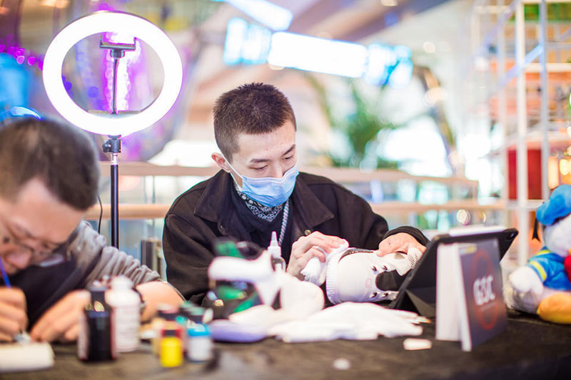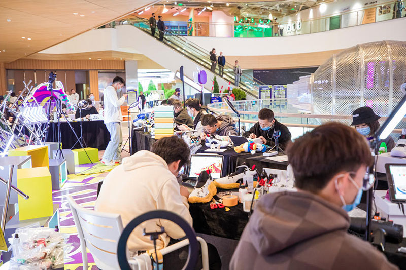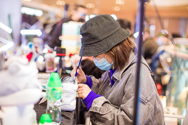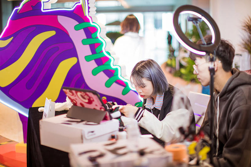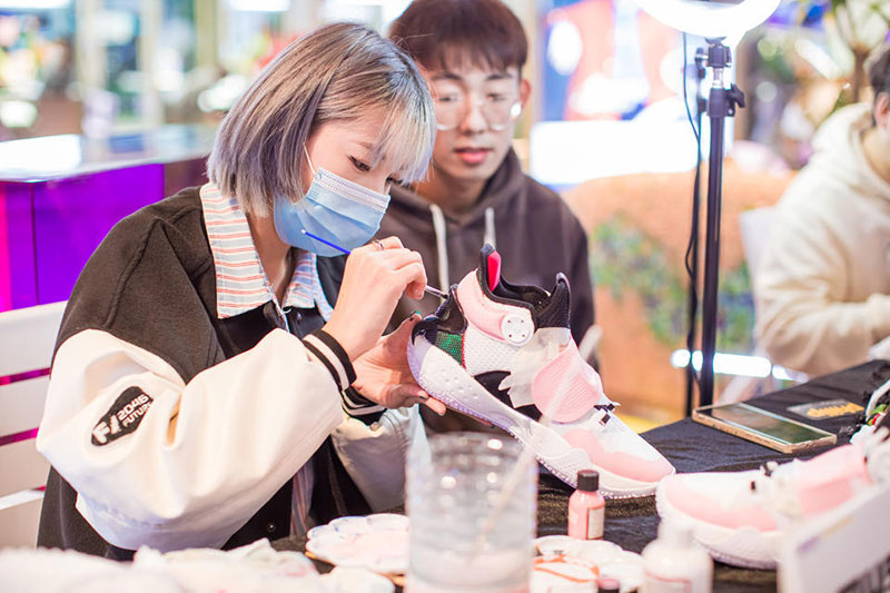 在“「年轻潮力周」暨第三届全国球鞋定制大师赛”快闪活动里,特地邀请了10位中国顶尖球鞋定制大师来现场定制球鞋,通过“球鞋文化”聚集年轻人,和年轻人对话。