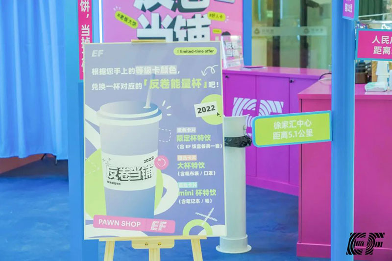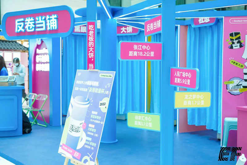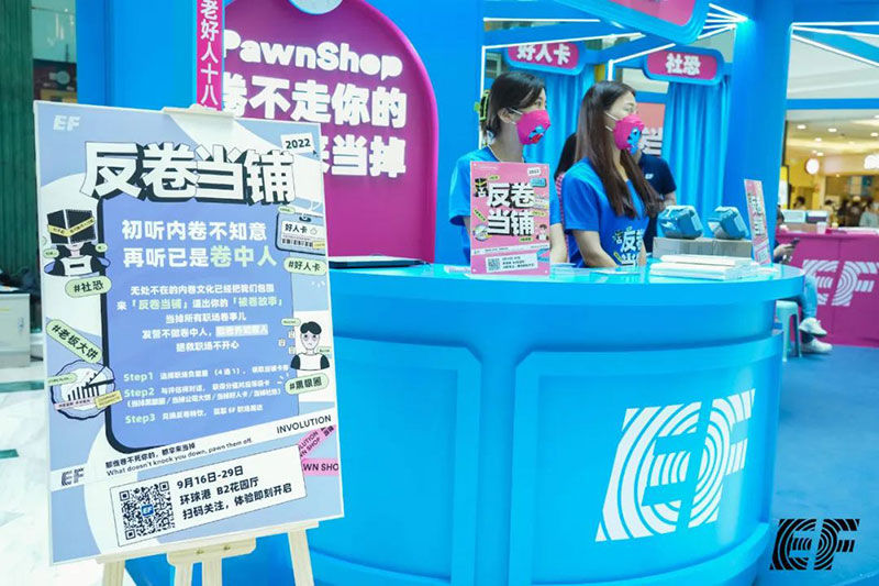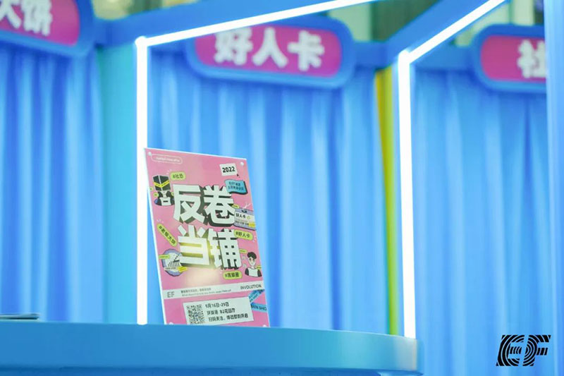 随着00后的整顿职场,一股“反内卷”热潮开始占据职场上风,让boss们瑟瑟发抖……作为新一代职场人,不知道你的朋友圈最近有没有被EF为职场人量身定制的「反卷当铺」快闪店刷屏?「反卷当铺」快闪店的结构是一个螺旋形,一个内卷的结构,EF希望用户通过反卷当铺的互动过程中,受到启发,对内卷说不。快闪店分为接待区、评估区、兑换区,三个区域形成反卷的体验动线。