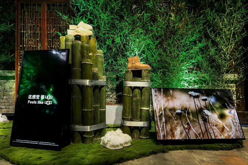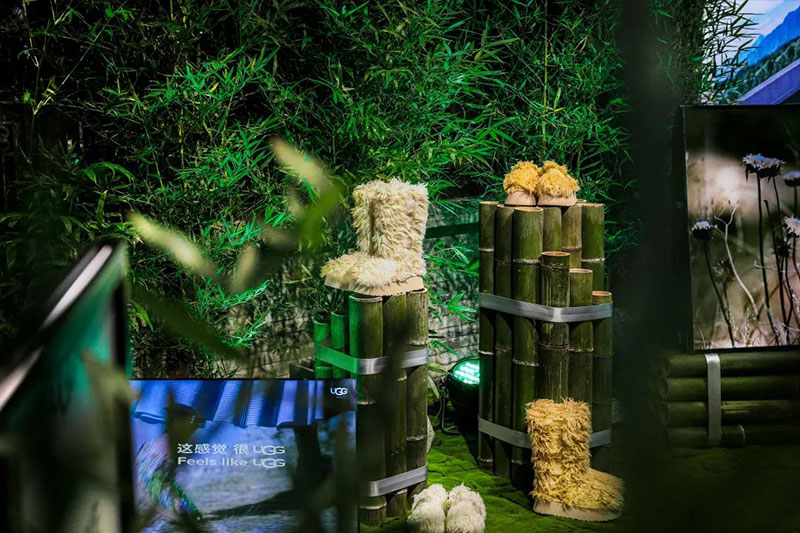 茂密竹林间,亦有 UGG®环保再生系列鞋履的身影,UGG®全新 Classic Mini Regenerate 靴款的材料由“可再生农场”制造,每售出一双,UGG®会将部分收益投入到“20 万英亩草地转化为再生农田”的公益事业中,这是 UGG®为创造一个更为“可再生”的世界所做出的努力。