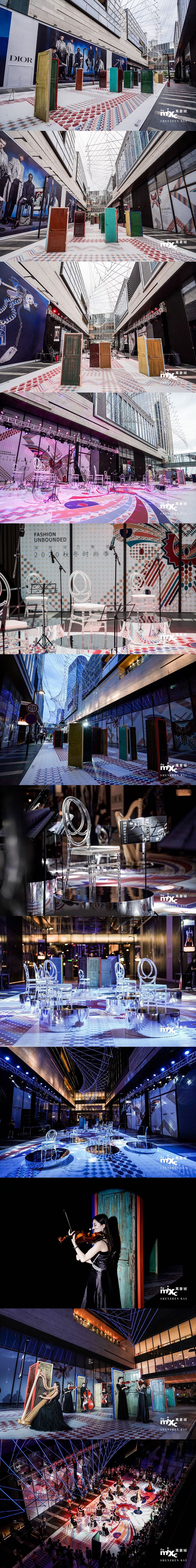 五十道形状与颜色各异的门错落有致地融入深圳湾万象城户外街区,颇具“任意门”意趣,似乎穿过它们便将进入与此时此地完全不同的时空。地面上斑斓的图腾宛如迷宫,越发吸引顾客跟随它的线索一路前行,在五十道门引发的想象世界里自由探险,更引发强烈好奇心去思索这个艺术装置创作试图讲述的“背后的故事”。