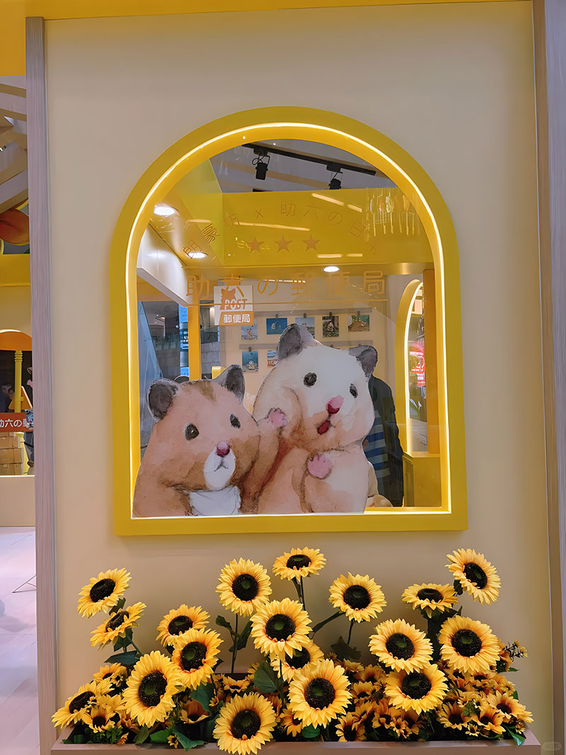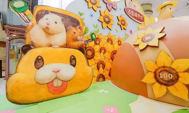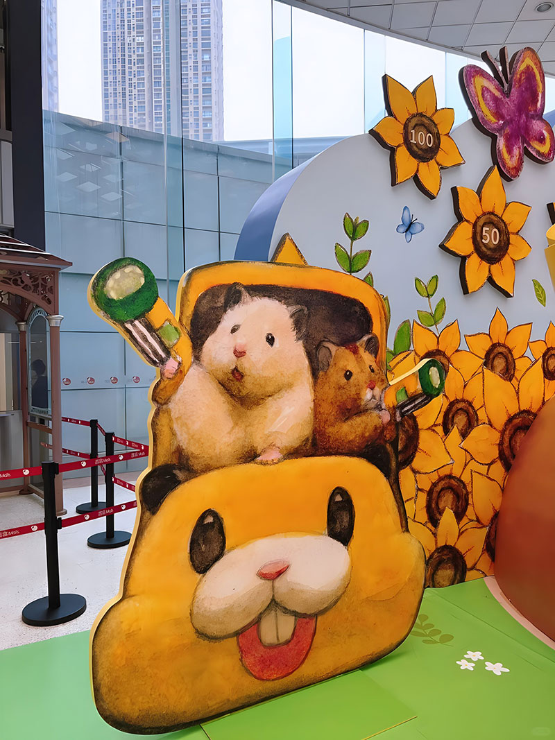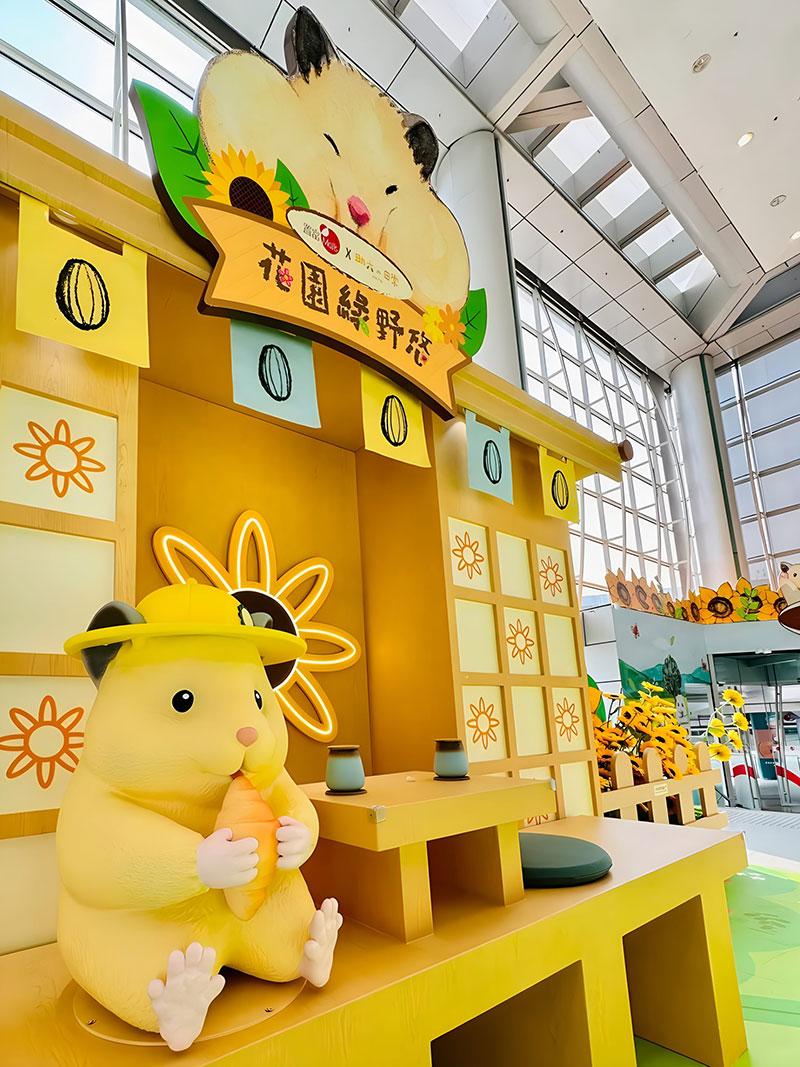 拥有逾 42 万追踪的人气日本插画《助六の日常》主角小仓鼠助六,现身置富 Malls 旗下的马鞍山广场!「助六の日常向日葵花园」之中有近4 米高的葵花园树屋,更有孭著书包、戴着小黄帽的小学生造型助六,旁边还有正在玩花墙射击游戏、跑滚轮的小仓鼠,相当可爱!