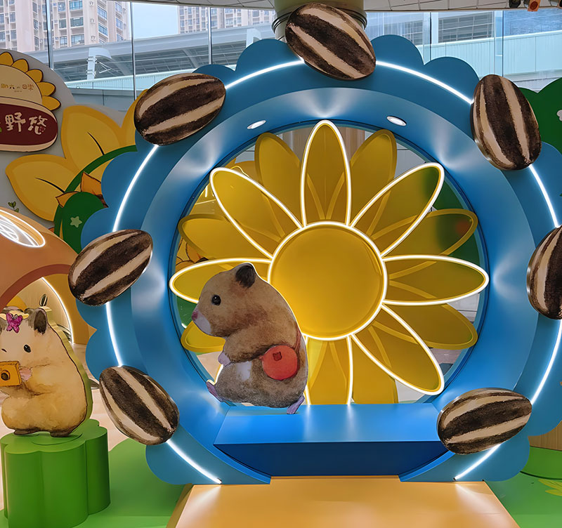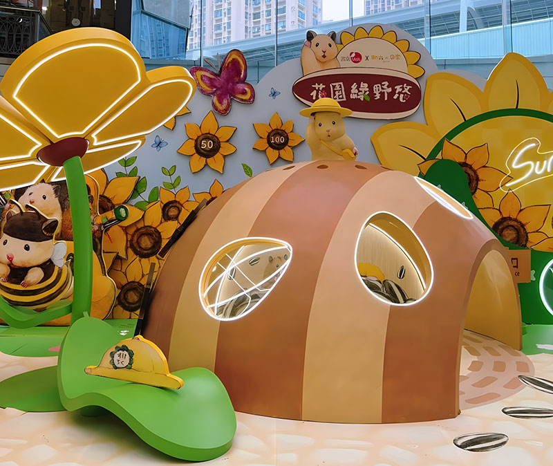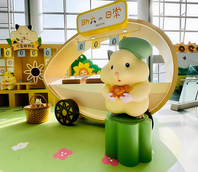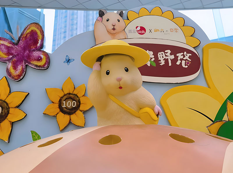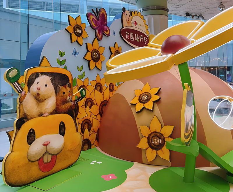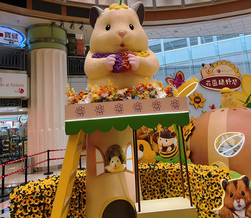 拥有逾 42 万追踪的人气日本插画《助六の日常》主角小仓鼠助六,现身置富 Malls 旗下的马鞍山广场!「助六の日常向日葵花园」之中有近4 米高的葵花园树屋,更有孭著书包、戴着小黄帽的小学生造型助六,旁边还有正在玩花墙射击游戏、跑滚轮的小仓鼠,相当可爱!