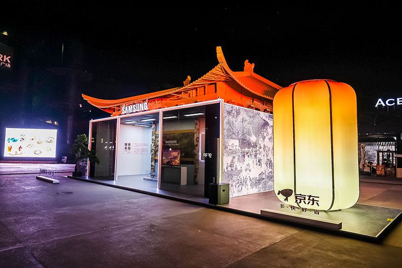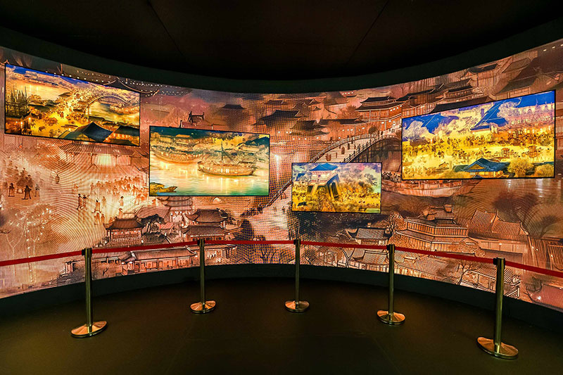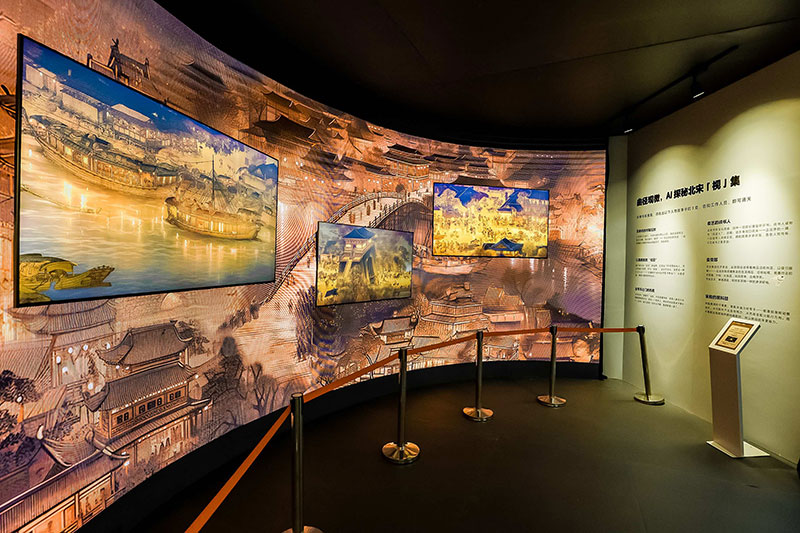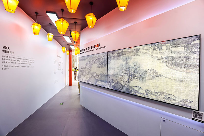 此外,快闪店还通过一系列互动体验项目,让参观者能够更深入地感受到北宋时期的生活气息。通过虚拟现实技术,参观者可以亲身漫步在复原的《清明上河图》中,与画中的人物互动,感受那个时代的独特风情。同时,还有专业的讲解员为参观者解读画作中的历史背景和文化内涵,让人们在欣赏画作的同时,也能增长知识,开阔眼界。