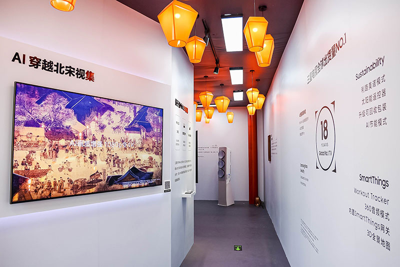 活动中,利用百度文心大模型的强大能力,三星电视成功地将《清明上河图》进行了高精度的AI复原。这幅被誉为“中华第一神品”的国宝级画作,在AI技术的加持下,仿佛重新焕发了生机。画中的每一处细节都被精准地呈现出来,无论是繁忙的市集、熙熙攘攘的人群,还是精致的建筑、生动的场景,都让人仿佛置身于千年之前的北宋世界。