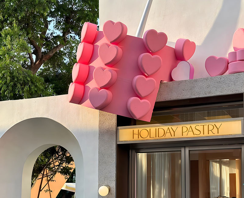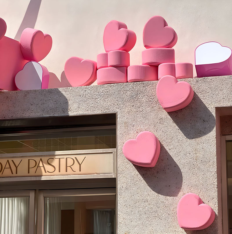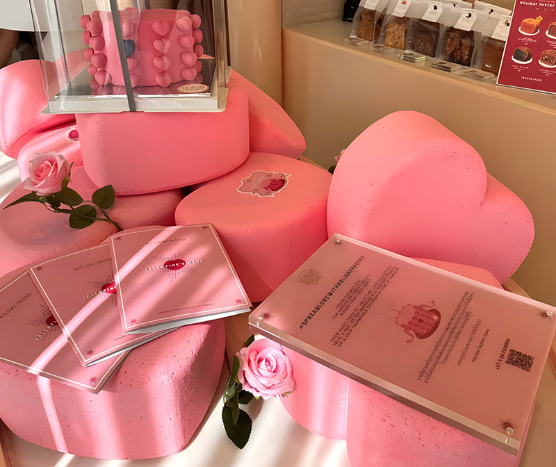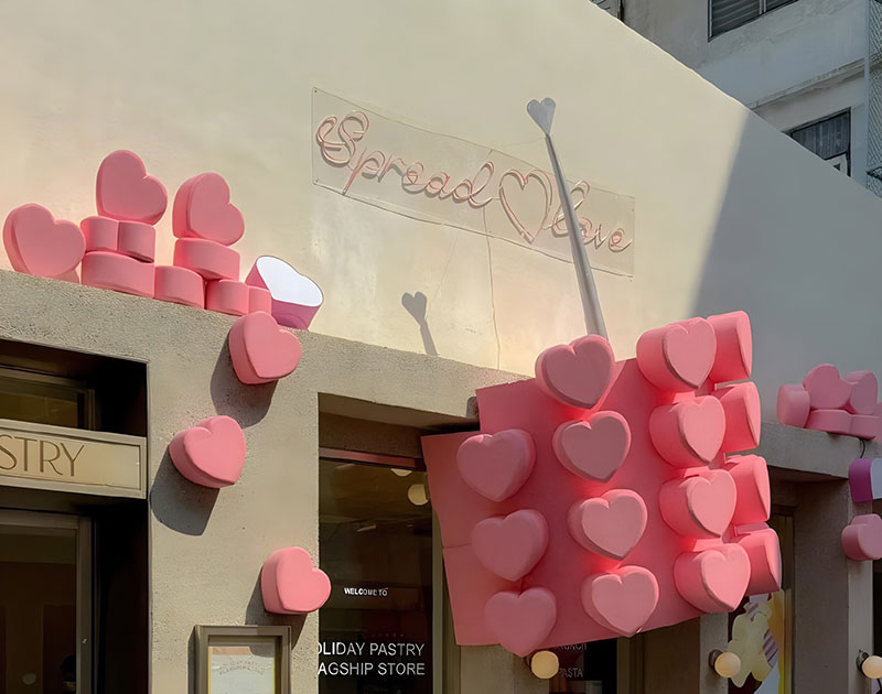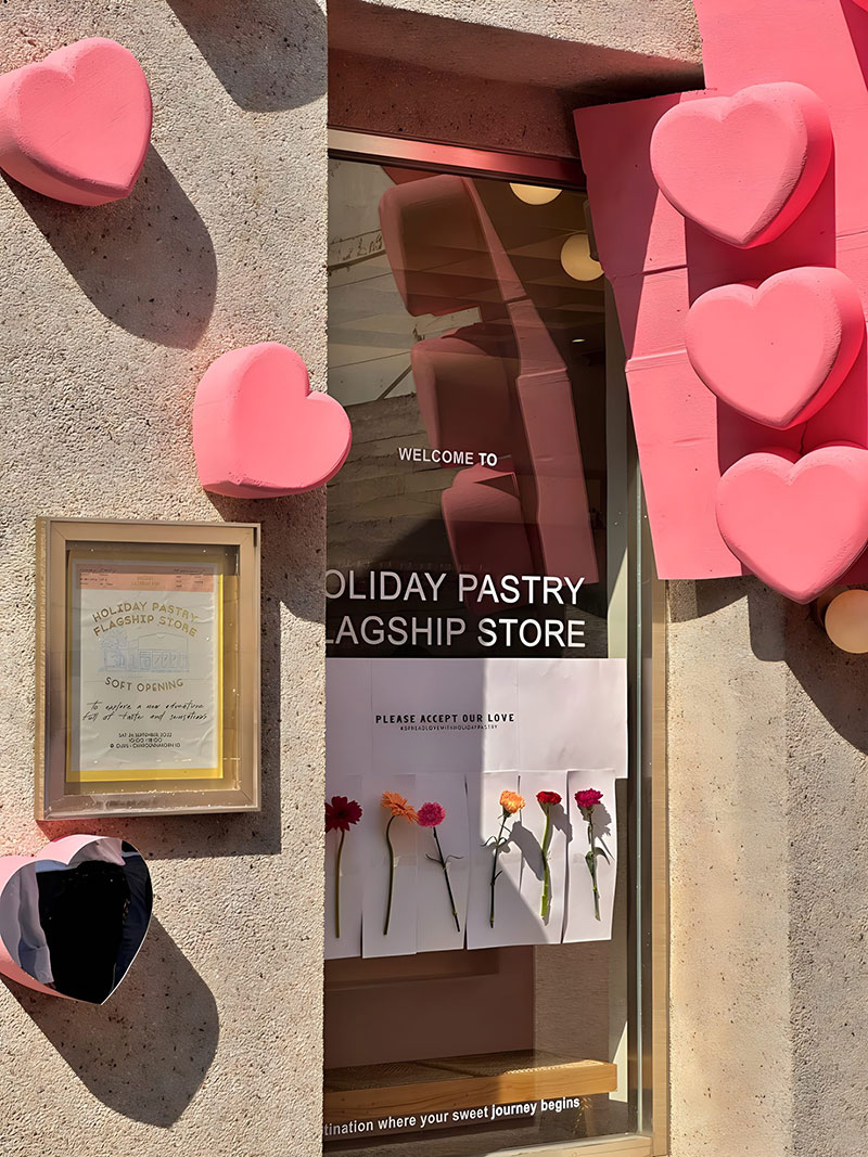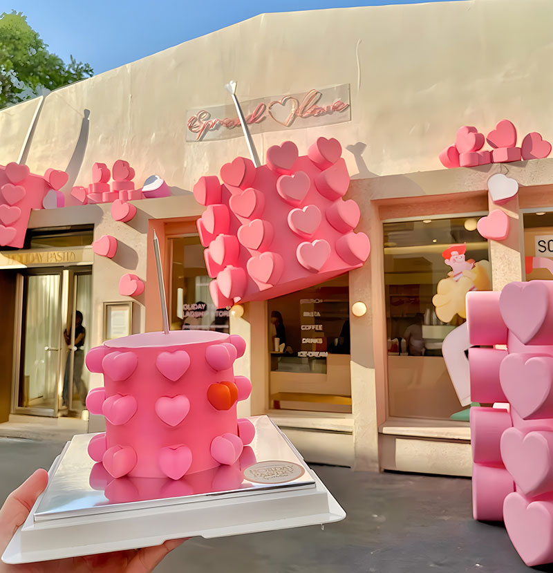 曼谷知名甜品店HolidayPastry发布情人节爱心快闪,以品牌原创蛋糕,爱在百万分之一 为灵感,发布同款视觉装点节日氛围,更有不同颜色的爱心可选择,对应不同社群,让一切都染上粉色!这里的装饰超级可爱,还有让人心动的粉色主题新菜单,不仅外观吸引人,味道也非常棒,让你在情人节感受别样的浪漫。