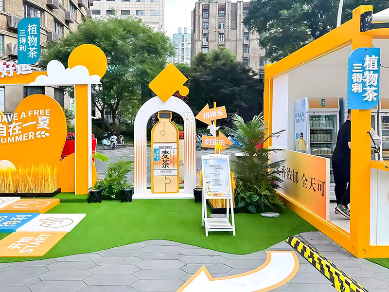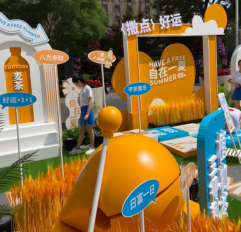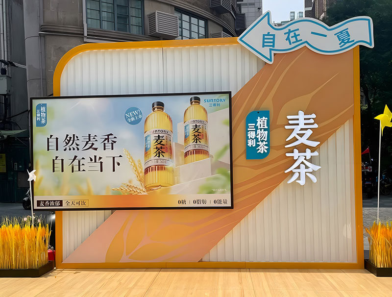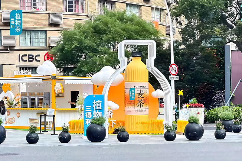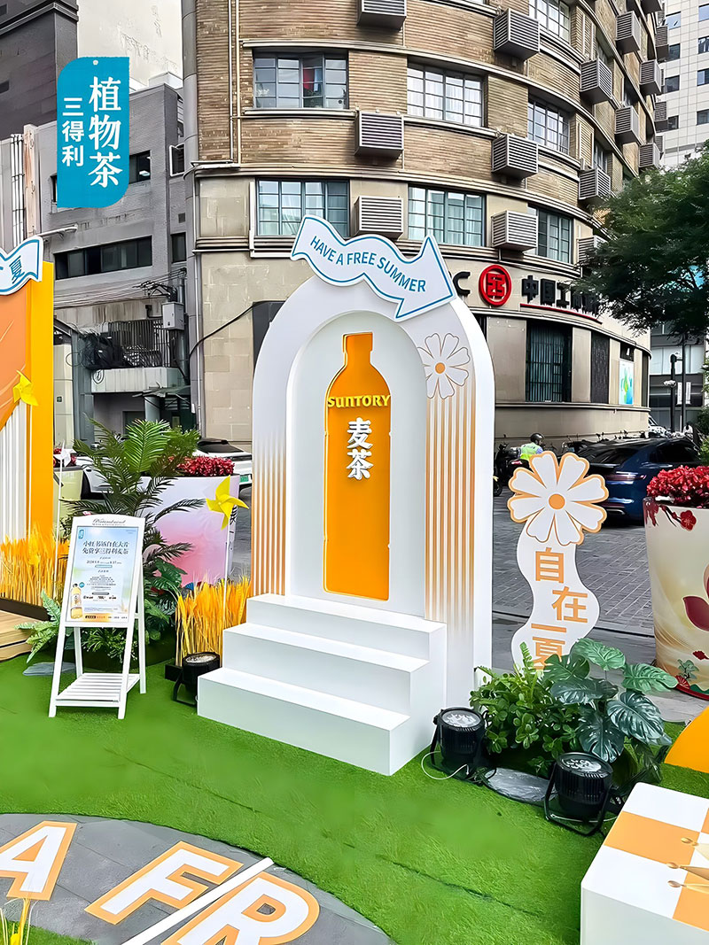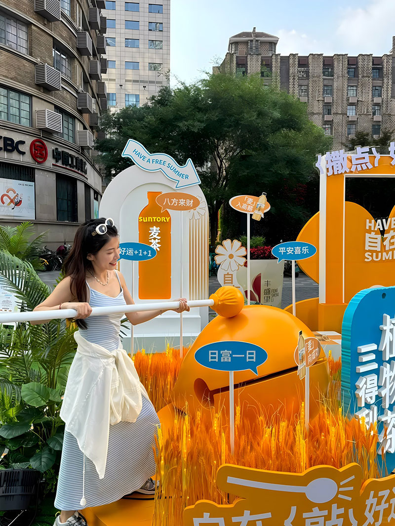 三得利麦茶在上海吴江路的自在一夏快闪,chao酷的!现场chao多福利,入口处的巨型麦茶瓶,有被一眼帅到,颜色好靓~好爱现场chao大的木鱼,好有氛围感,互动性好强,好出片!