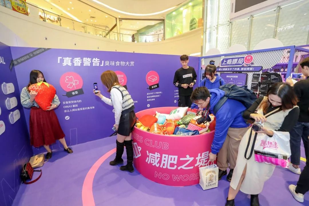 为了庆祝这些“养生有理,开心就好”的小癖好,丁香医生联合首席合作伙伴LITTLETOUCH哩头,特约赞助商圣奥集团在广州东方宝泰商场中开启了“没毛病俱乐部”快闪活动的第一站。活动从饮食、美妆、健身、心理、睡眠等年轻人常见的健康困扰出发,以兴趣圈子、趣味互动、扎心文案、知识点普及等深度互动场景去落地打造健康生活方式的沉浸式体验场景,吸引了许多热爱生活的年轻人驻足参与。