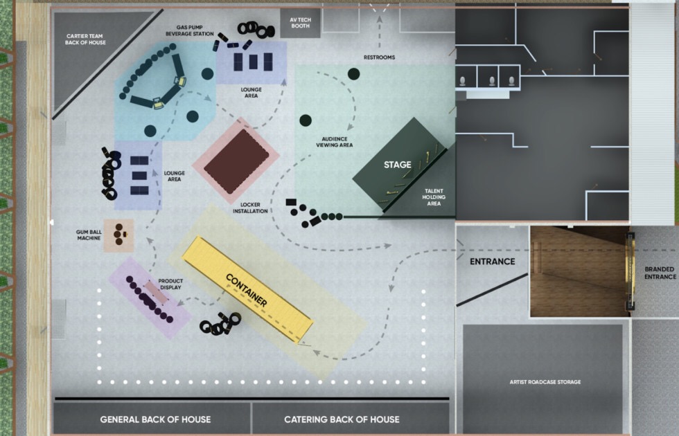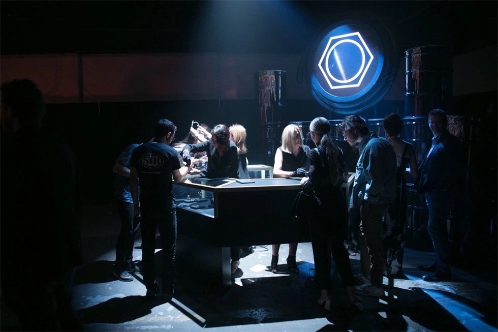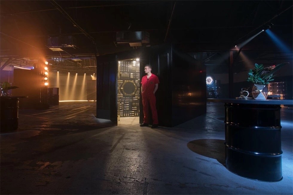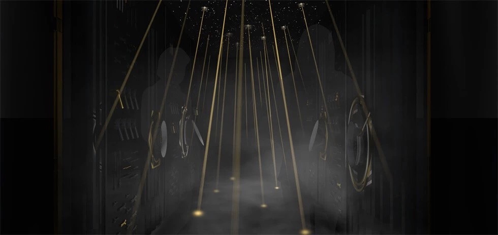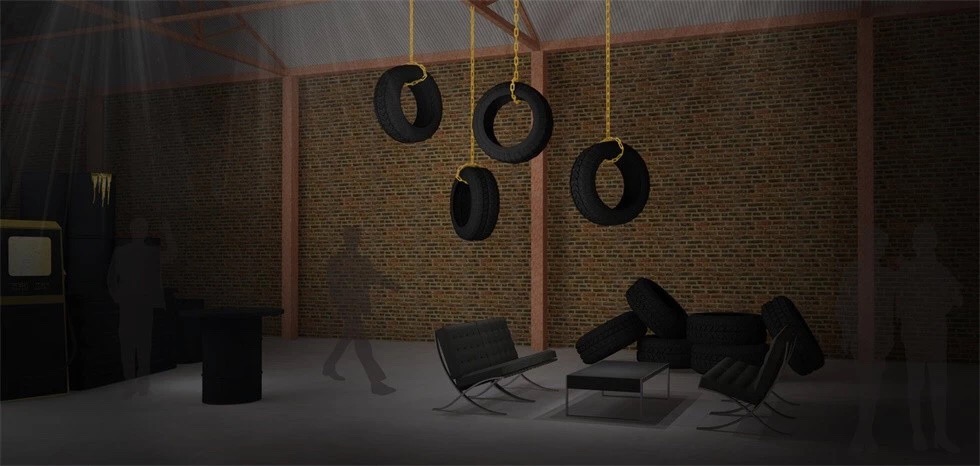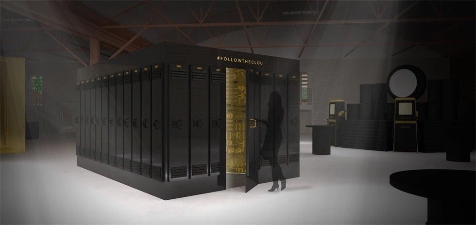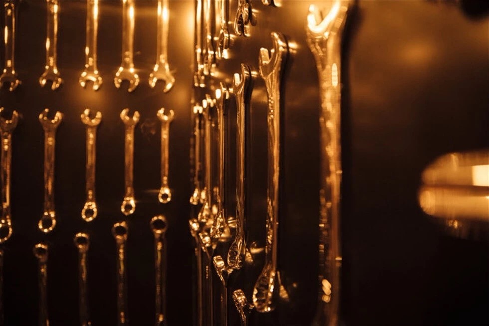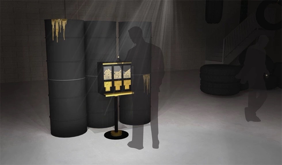 而田纳西州的纳什维尔市是“ Clou”之旅的第二站。由于卡地亚在这里没有很大的市场份额或客户群,所以它的出现给当地人带来了意想不到的快闪店式的感觉。当客人进入现场时,他们首先会看到金色的集装箱,独特装置的激动刺激他们探索这个空间。在活动中,客人可以触摸并品尝Cartu JUC(Juste un Clou)和Écrou珠宝。显示体验柜台后面叠放着一个锡油桶,上面有一个大的JUC灯箱。定制酒吧被设计为油轮,“gasker”显示屏采用透明玻璃制成,可以看到内部冒泡的香槟。夜幕降临时,机械钟clock嗒作响。舞台背景由覆盖着汽车零件和车库工具的金色面板组成,所有面板均带有金色光泽。当打开集装箱的门时,发现里面有一个自画像亭,客人进入三角形的房间,在用工具和汽车零件装饰的金色或黑色镜面墙上拍照。