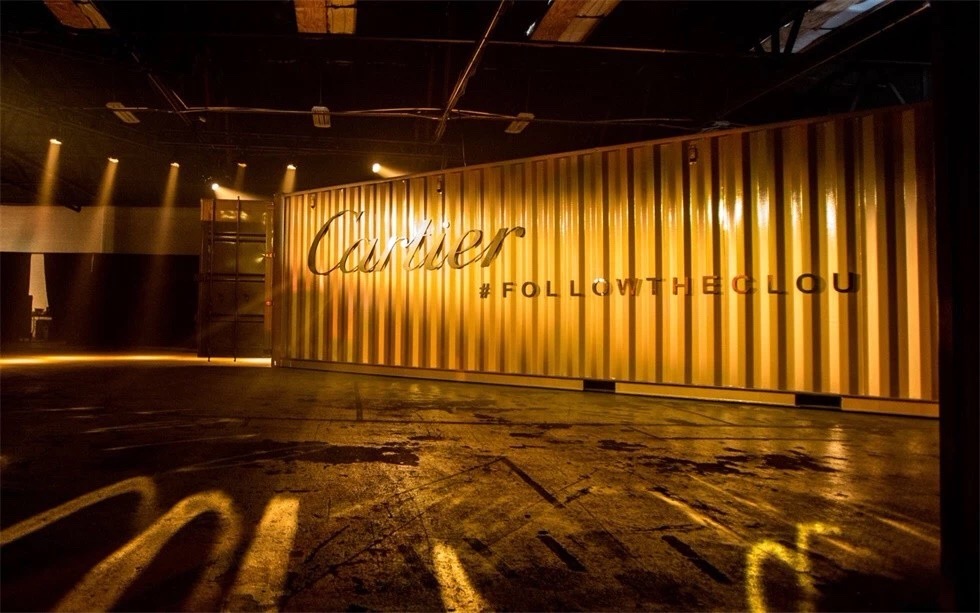 这次巡回活动策划将一个普通的40英尺集装箱变成一个金色的“宝藏”装置。为了说明Juste un Clou系列的起源,请使用普通的指甲在容器的天花板上打很多孔。当客人走进来时,他们看到天花板上洒满了金色的光芒,将他们笼罩在天花板上。沿着货柜壁,人们在如此迷人的氛围中欣赏卡地亚产品的同时拍照和录像。在社交媒体上,邀请粉丝参#FollowTheClou的话题互动。接下来随尚逸文化小编一起去看看田纳西州的纳什维尔市的活动现场啦。