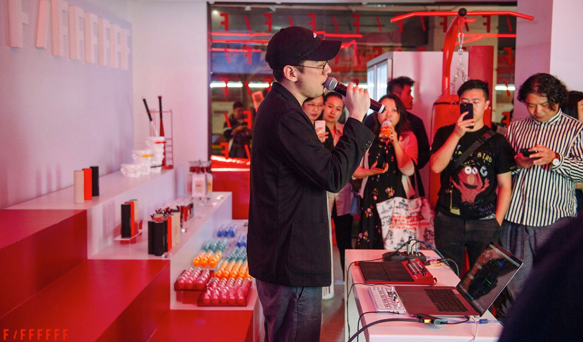 未来感,不羁,新潮像是快闪店的性格标签,吸引了不少志同道合的标签携带者 。到场的当代艺术家陈陈陈,是国内知名的迷幻电子团体“香料”的创始人,他完美的音色和独特的哲学思想,赋予了现场的人们一场听觉盛宴。在迷幻的音乐中,他诠释了未来的艺术。