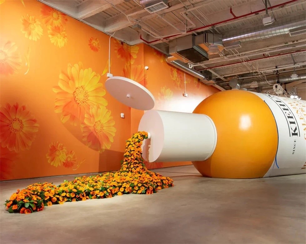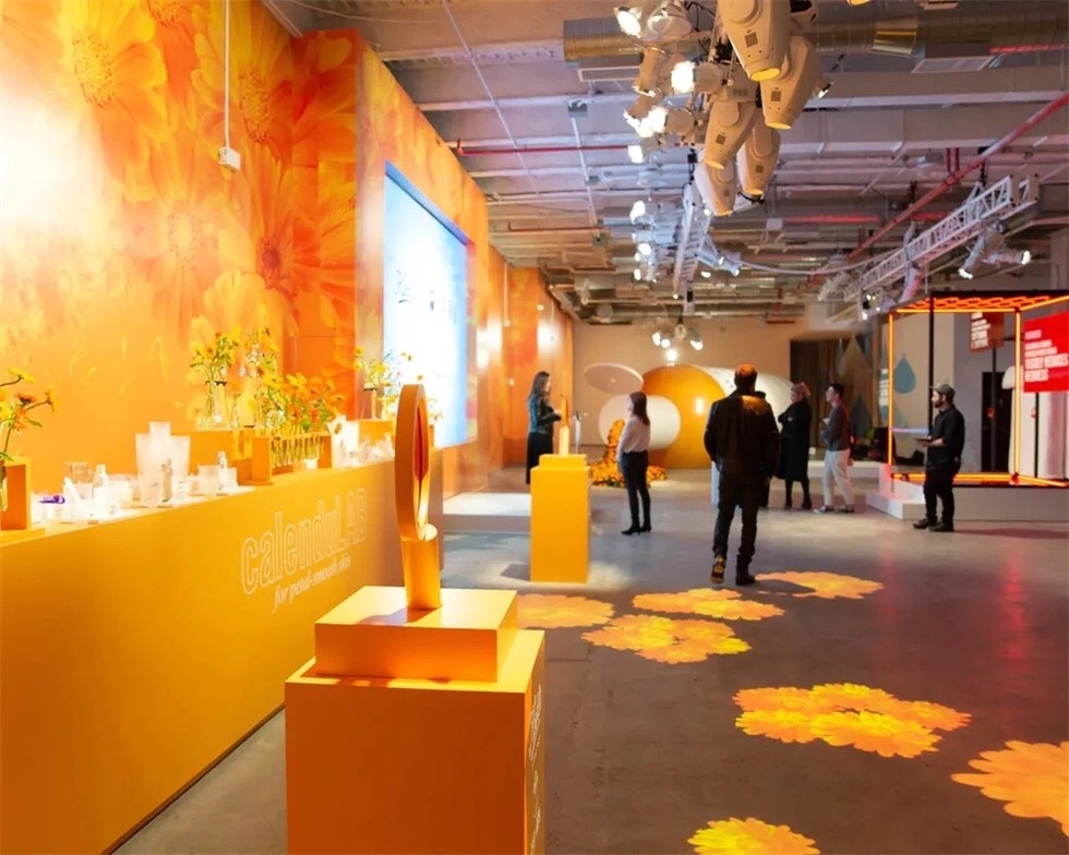 1851年创立于纽约曼哈顿的Kiehl’s(科颜氏)在其纽约总部通过天猫产品首秀营销工具天猫小黑盒首次推出其最新产品——新款金盏花精华水霜,这场新品发布会策划的现场金盏花精华水霜的大型装置形象地把产品的材料体现了出来。