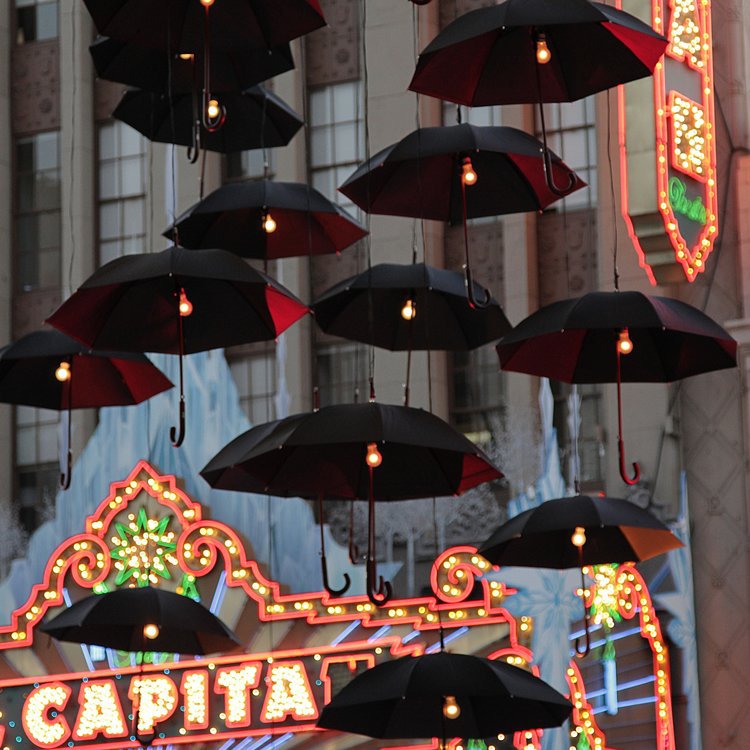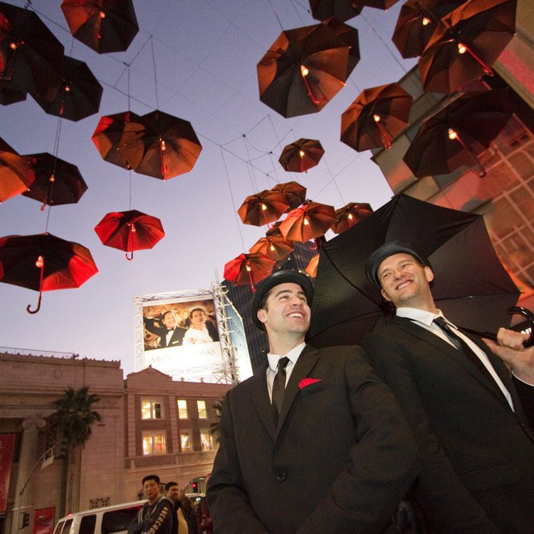 好莱坞林荫大道上策划并制作了一件令人惊叹的雨伞艺术品,在 等待迪士尼大电影“大梦想家 Saving Mr. Banks”前,在杜比剧院的路人为这哥快闪式的设备拍摄了成千上万的社交媒体照片或视频,画家和素描画家也进行了描绘。这是一项纯粹的体验性活动,没有任何媒体宣传,却在现场和网络上获得了超过一百万的印象。
