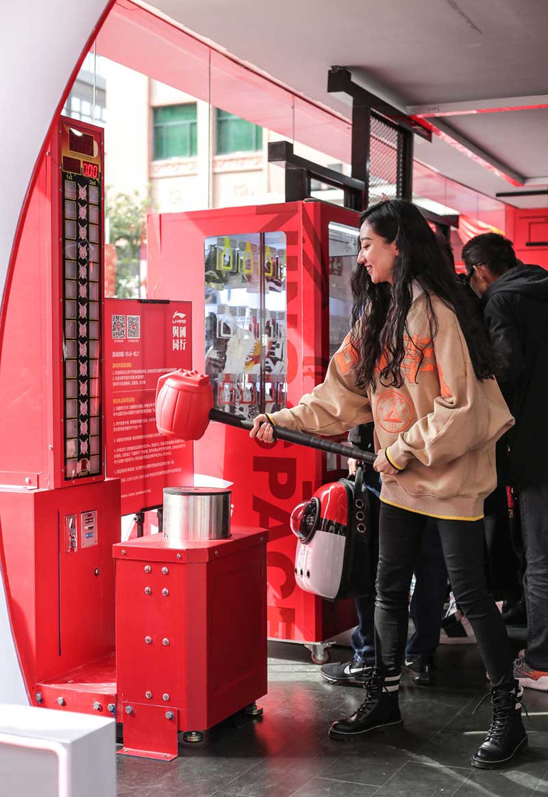 李宁NING SPACE快闪店策划规划了很多看点,不管是现场的风格布置,还是售卖的产品,整个快闪店的每个细节都非常丰富,也处理得很到位,还有互动小游戏可以赢得奖品,是鲜明何活力的相互碰撞,完美地打出了“C位出道”的一手好牌。