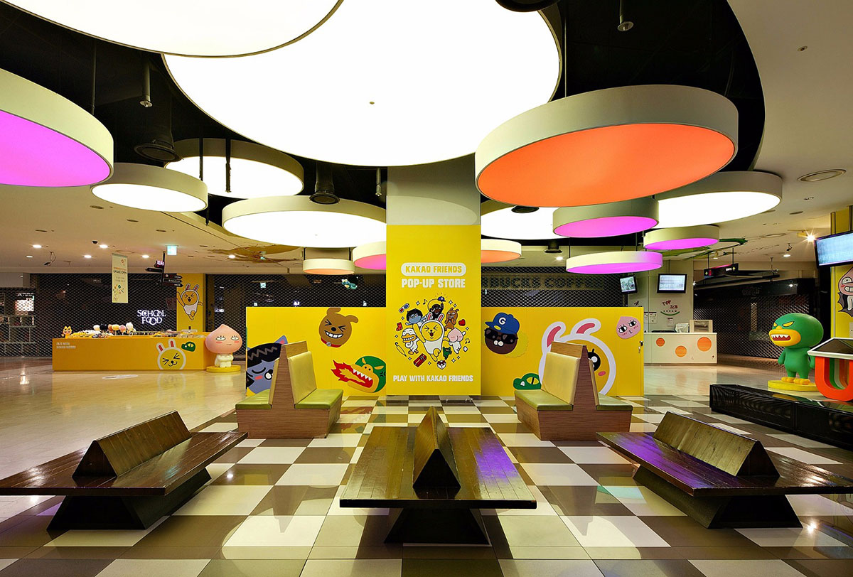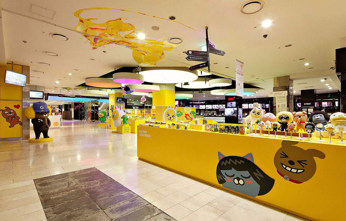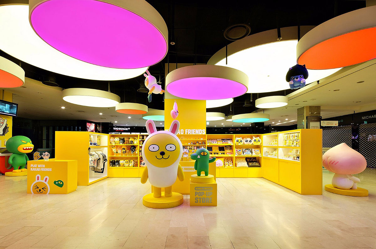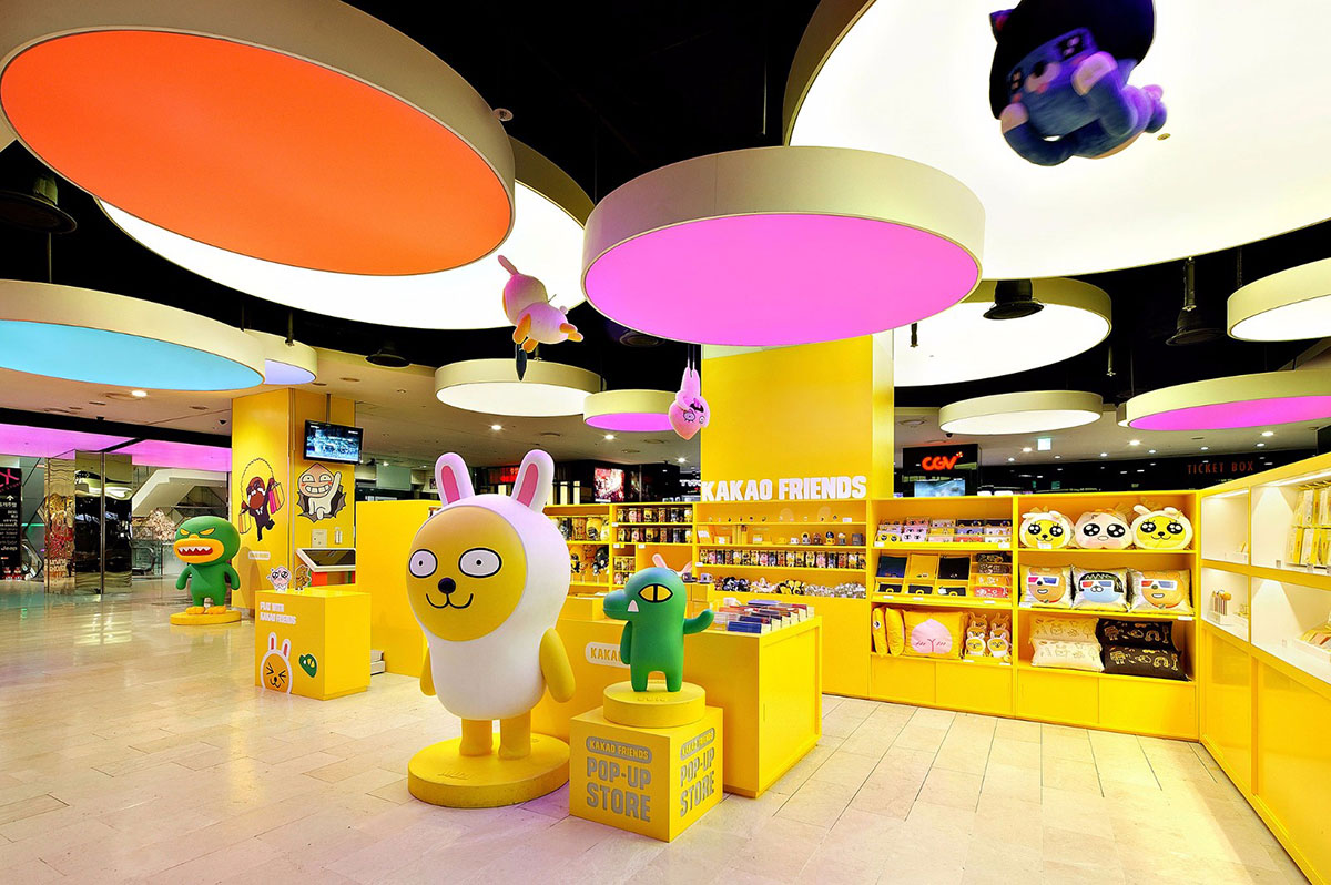KAKAO FRIENDS主题商店内卡通原型取自韩国国民软件KAKAO TALK。此次KAKAO主题展览策划了很多特色表情人物,而且每个人物都有自己的名字,像是可爱的小兔MUZI、粉嫩的小桃APEACH、大嘴TUBE等等。一进入商店迎面而来的就是巨型卡通人物的展示区。看到萌萌的MUZI在朝你微笑,怎么能不去和他来张亲密合影呢?在KAKAO FRIENDS SHOP主题店里陈列着各式各样的周边商品,大部分以实用的生活用品为主。