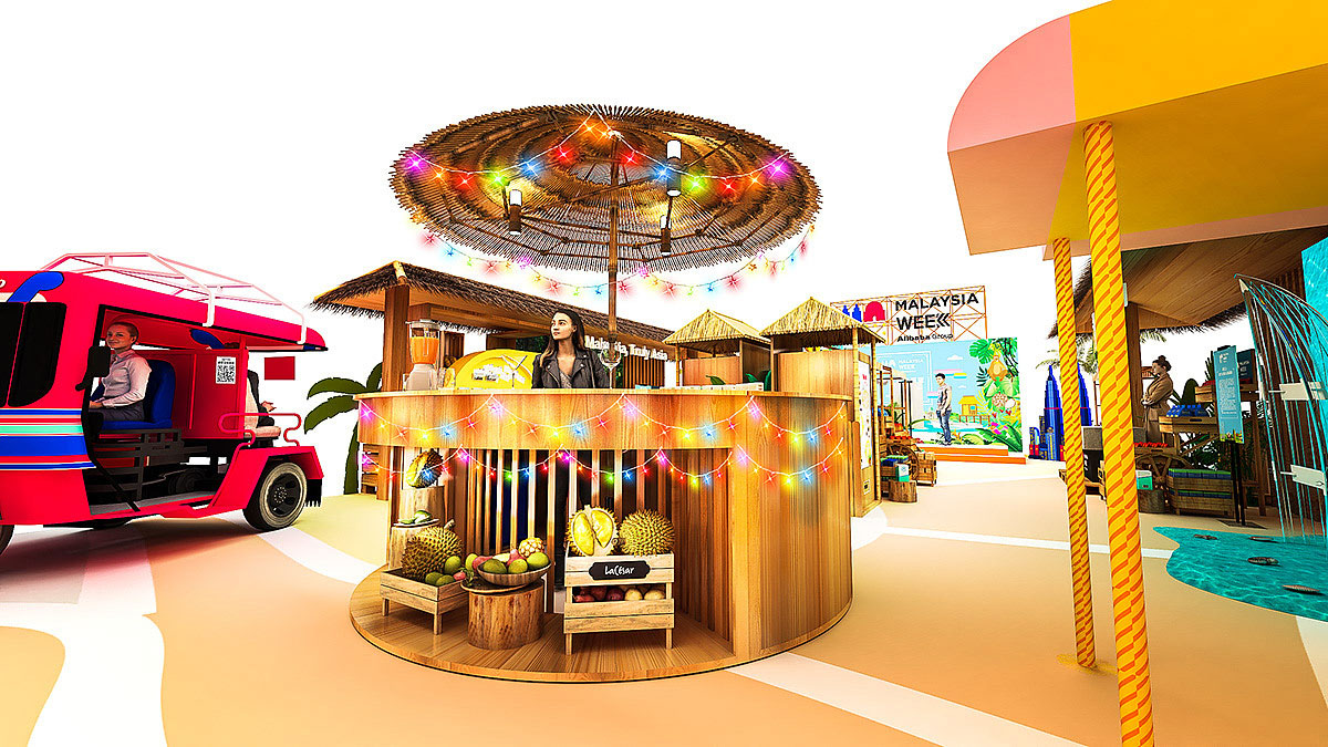 东南亚风格的设计以其来自热带雨林的自然之美和浓郁的民族特色风靡世界,尤其在气候之接近的珠三角地区更是受到热烈追捧。东南亚式的设计风格之所以如此流行,正是因为它独有的魅力和热带风情而备受人们推崇与喜爱,原汁原味,注重手工工艺而拒绝同质的乏味,在盛夏给人们带来南亚风雅的气息。而这个快闪店策划就很好地为我们呈现了东南亚风格,椰树、草棚、霓虹灯、原木等元素,都精致地呈现了,就连东南亚的突突车也搬上了这个快闪店,极其别致和趣味。