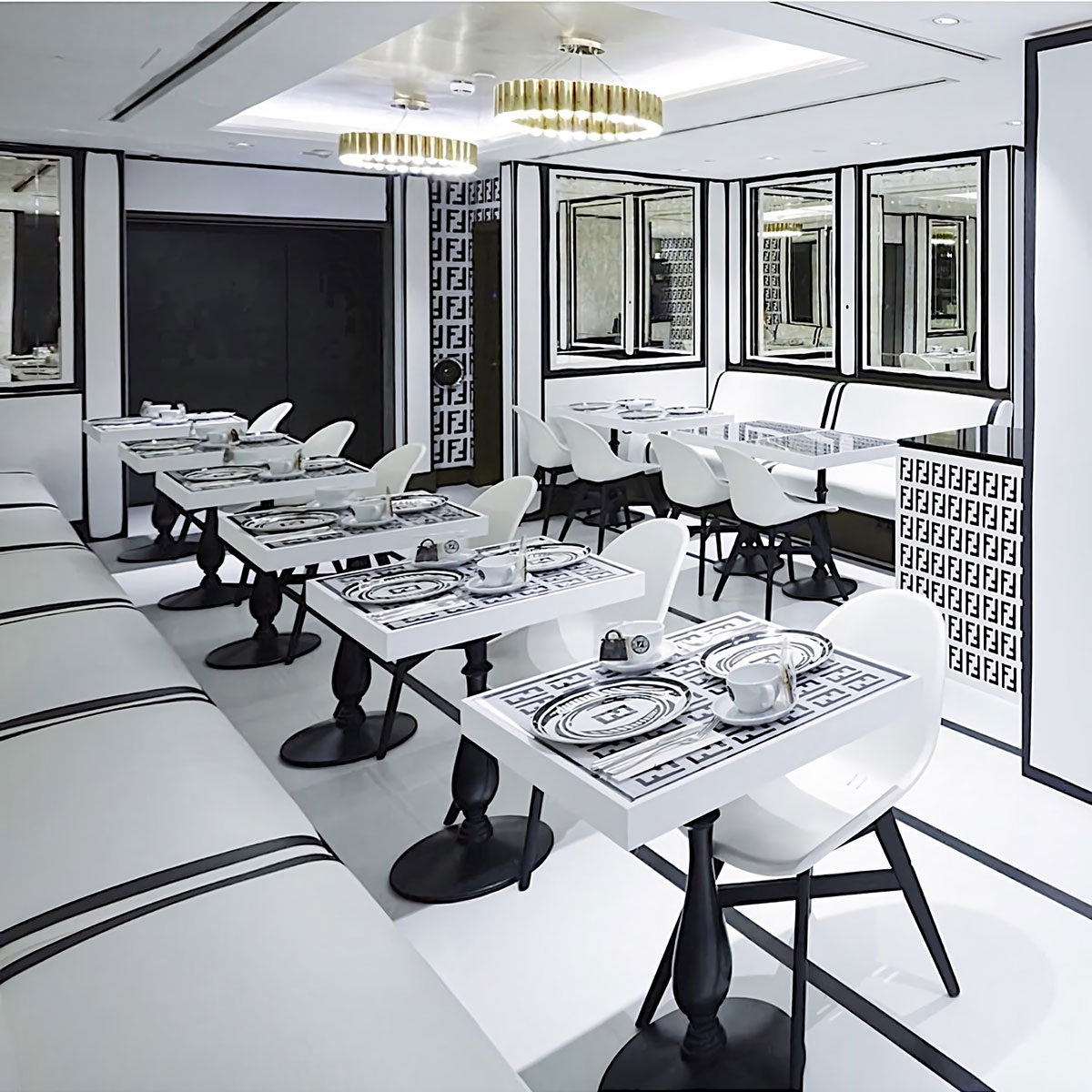 FENDI与视觉艺术家Joshua Vides合作设计,开了一家咖啡快闪店,这家咖啡快闪店策划设计了各种美食,包括从袋形饼干到咖啡和蛋糕的所有东西,上面印有该品牌标志性的双F标志,对FENDI进行了不一样的改造,给大众呈现出一种从没有过的FENDI。