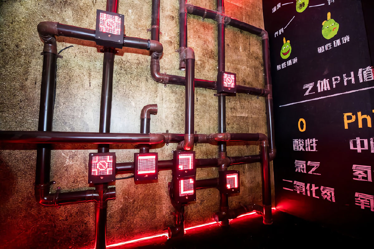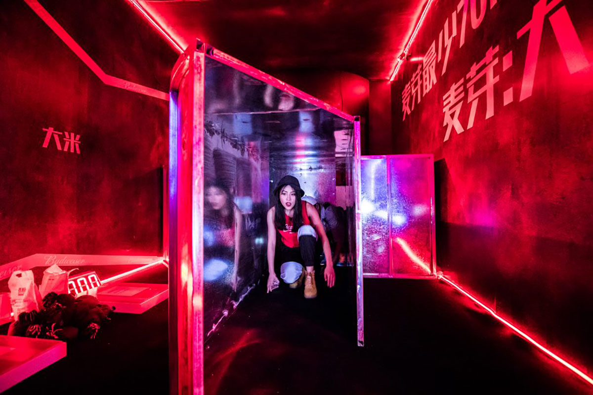 BUDX MAZE百威品质密室快闪店策划设计的主题就是啤酒的诞生,主要包括粉碎、糖化、啤酒花诞生、沉淀和过滤,而且这个密室快闪店依循的原则就是:密室的通道是没有捷径可以到出口的,而这也跟百威啤酒坚持品质不走捷径的品牌理念相呼应。