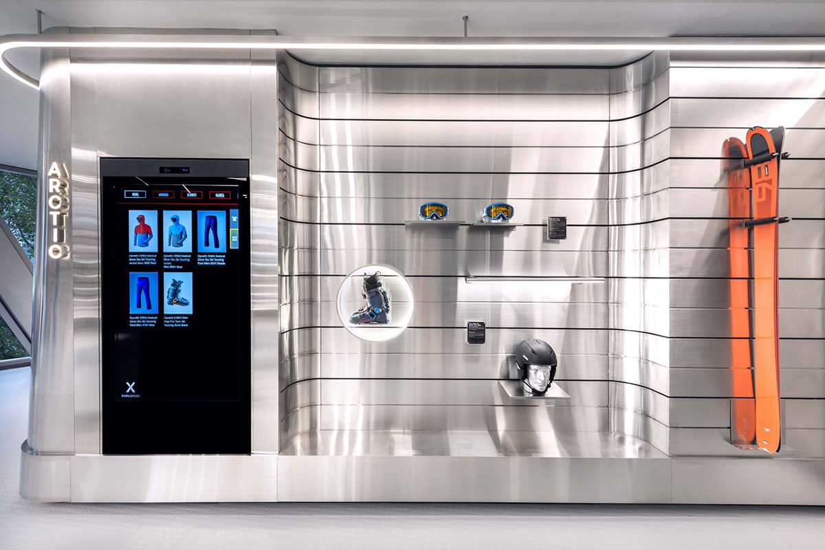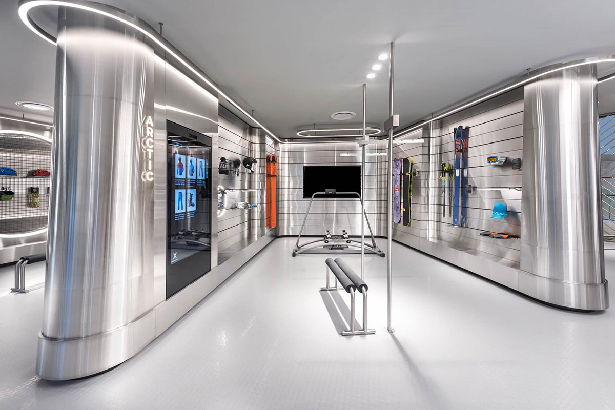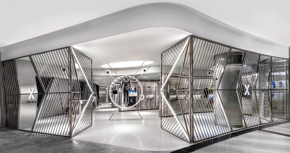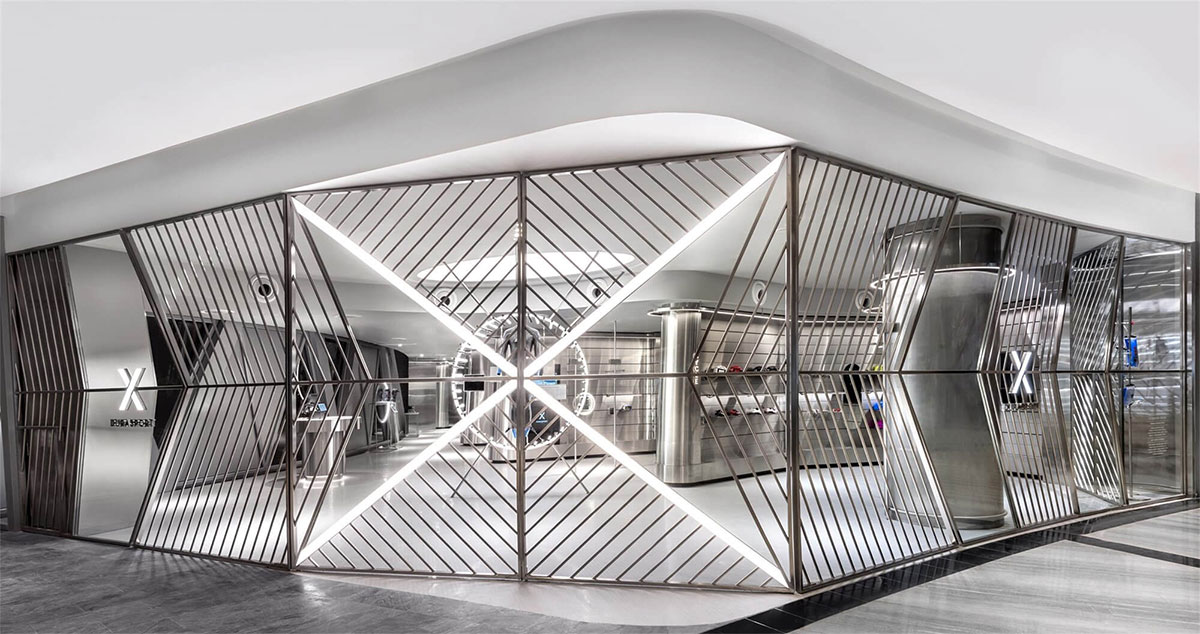 整个快闪店设计充满了未来主义,闪亮的不锈钢固定装置和墙板,使顾客沉浸在产品的体验中,引导顾客参与到相关的亲身体验中来。快闪店的外观是由钢框架和人字形图案组成的,指向中央入口,传达了一种运动感,而作为标志的X符号表示任何实验开始时的催化剂,让人想起两个箭头在一起,就像商店入口处的X一样。在这里,你可以享受高度的私人定制和细节展示单元介绍了所选产品的独特性,并且通过“剖析”这些产品,对它们进行测试,或是提供产品构造的X射线视图,从而对产品进行全面的了解。