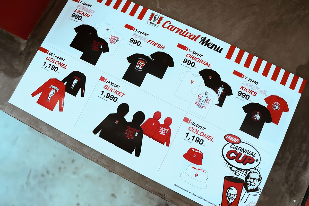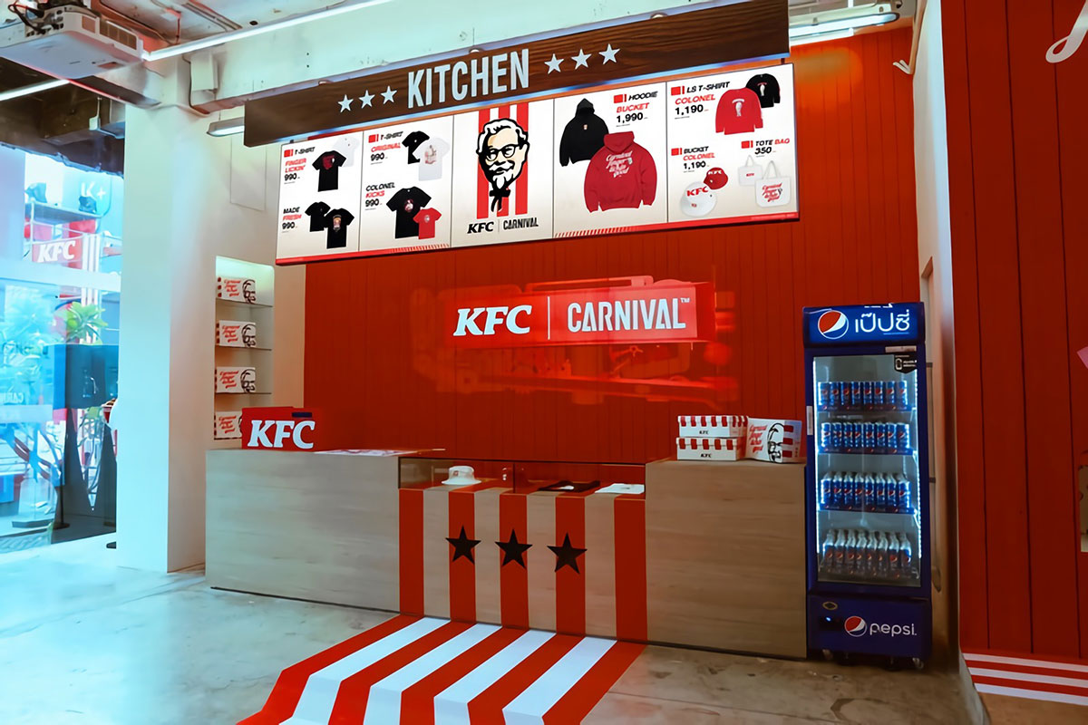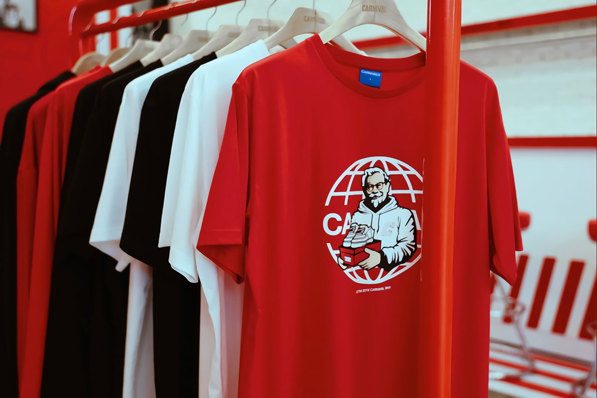 前有麦当劳开快闪店,这不,肯德基也不甘示弱,同样来了一间华丽丽的快闪店,唯一不同的是肯德基这次是与来自泰国的知名潮流店铺Carnival合作的。此次合作的快闪店策划是肯德基与Carnival联手推出“Finger Lickin’ Good” 胶囊系列,整个快闪店在配色上也是沿用肯德基标志性的红白配色方案,展示了“Finger Lickin’ Good” 胶囊系列的多件各式 T 恤、连帽衫、帽饰和手提袋。