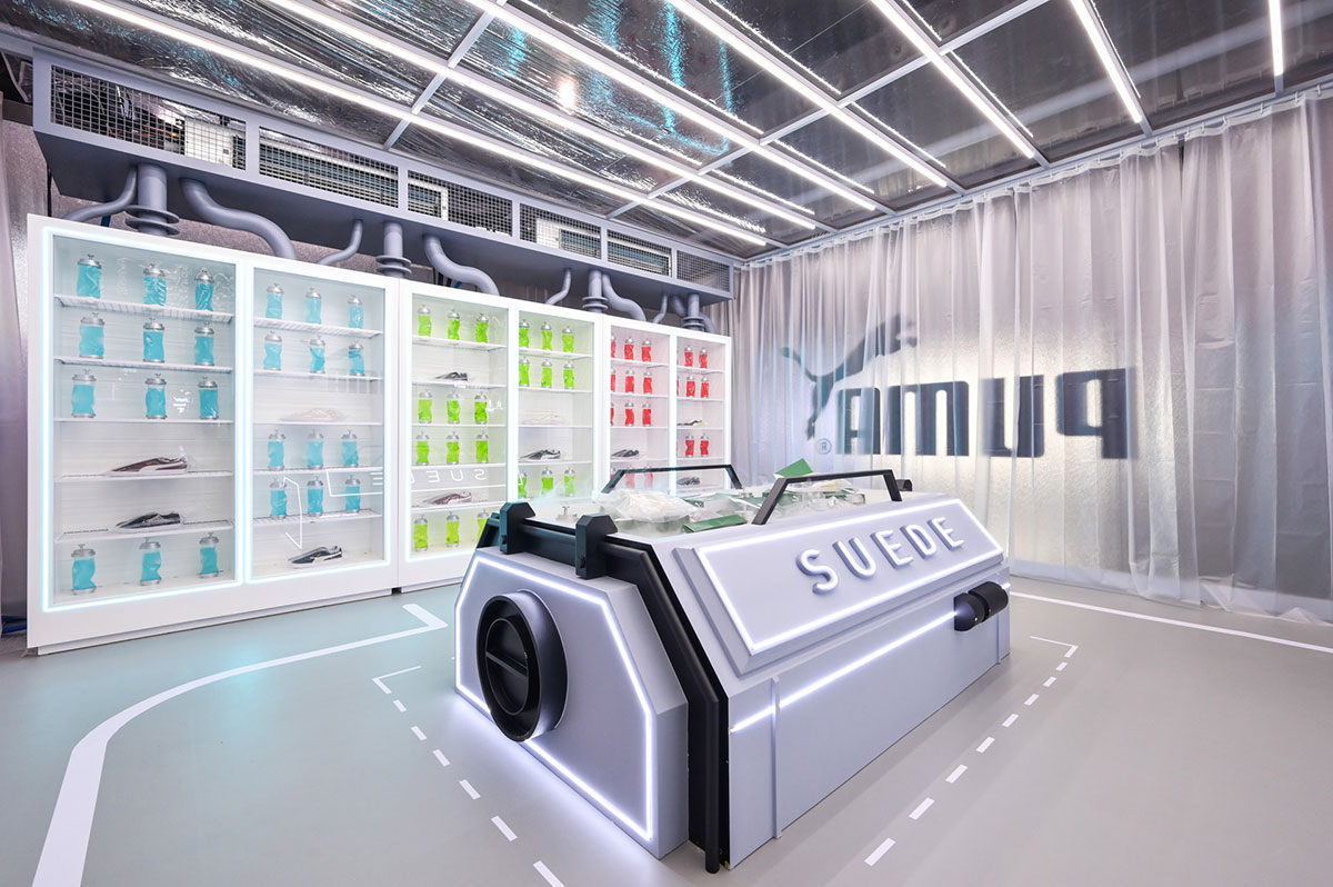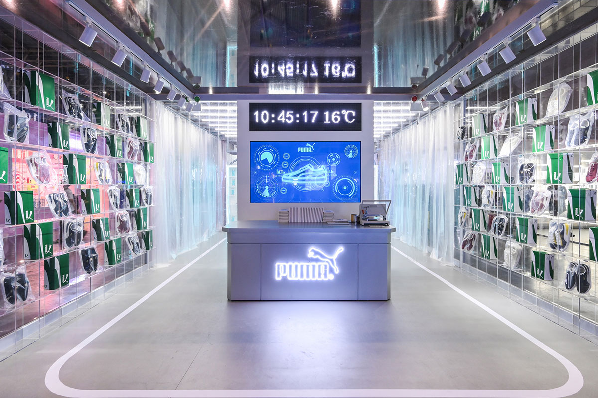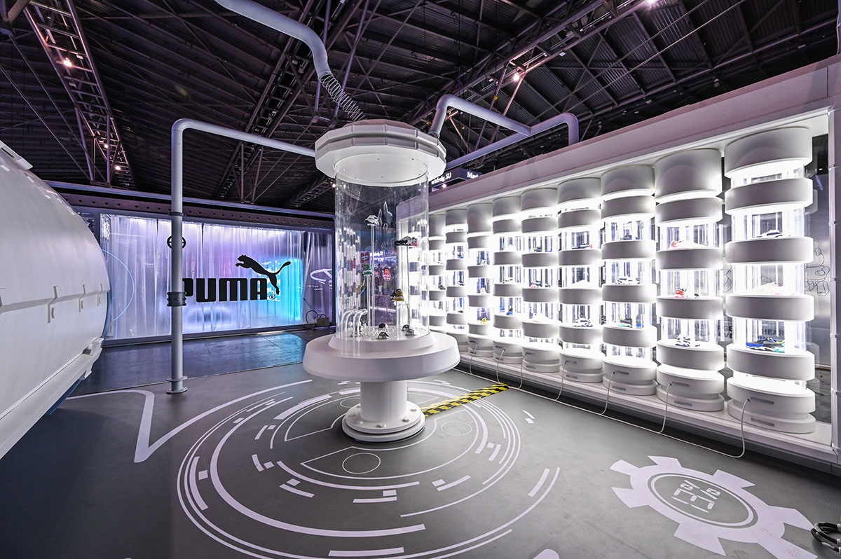 此次PUMA SPACE彪马太空舱快闪店策划设计了新物种研究区、重力测试区、多面反射区、风暴隔离区、时间进化区共五个区域,每个区域都以宇宙、太空、银河系等主线进行展开策划设计的,每个区域都是根据不同的产品特性进行划分的,都各有各的特色和功能属性,非常适合拍照打卡,十分炫酷,拍出来的每一张照片也都是时尚大片。