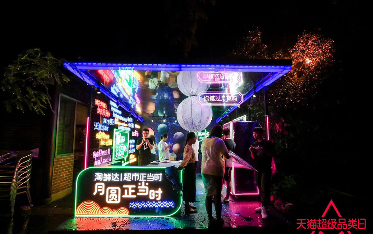在中国,除了过年,中秋就是最重要的节日了,中秋是一个美好团圆的日子。而中秋节自古便有祭月、赏月、吃月饼、玩花灯、赏桂花、饮桂花酒等民俗,流传至今,经久不息。中秋节又是以月之圆兆人之团圆,为寄托思念故乡,思念亲人之情,祈盼丰收、幸福。今年的中秋节,天猫推出了一场天猫中秋市集,此次快闪店策划设计了吃、喝、玩、乐等各种互动体验环节,新意多多、乐趣多多、优惠多多,那你何不和家人、朋友一起来天猫中秋市集逛逛,一起赏月、玩花灯猜灯谜,再一起吃点月饼品点小酒,一起过个不一样的中秋佳节。