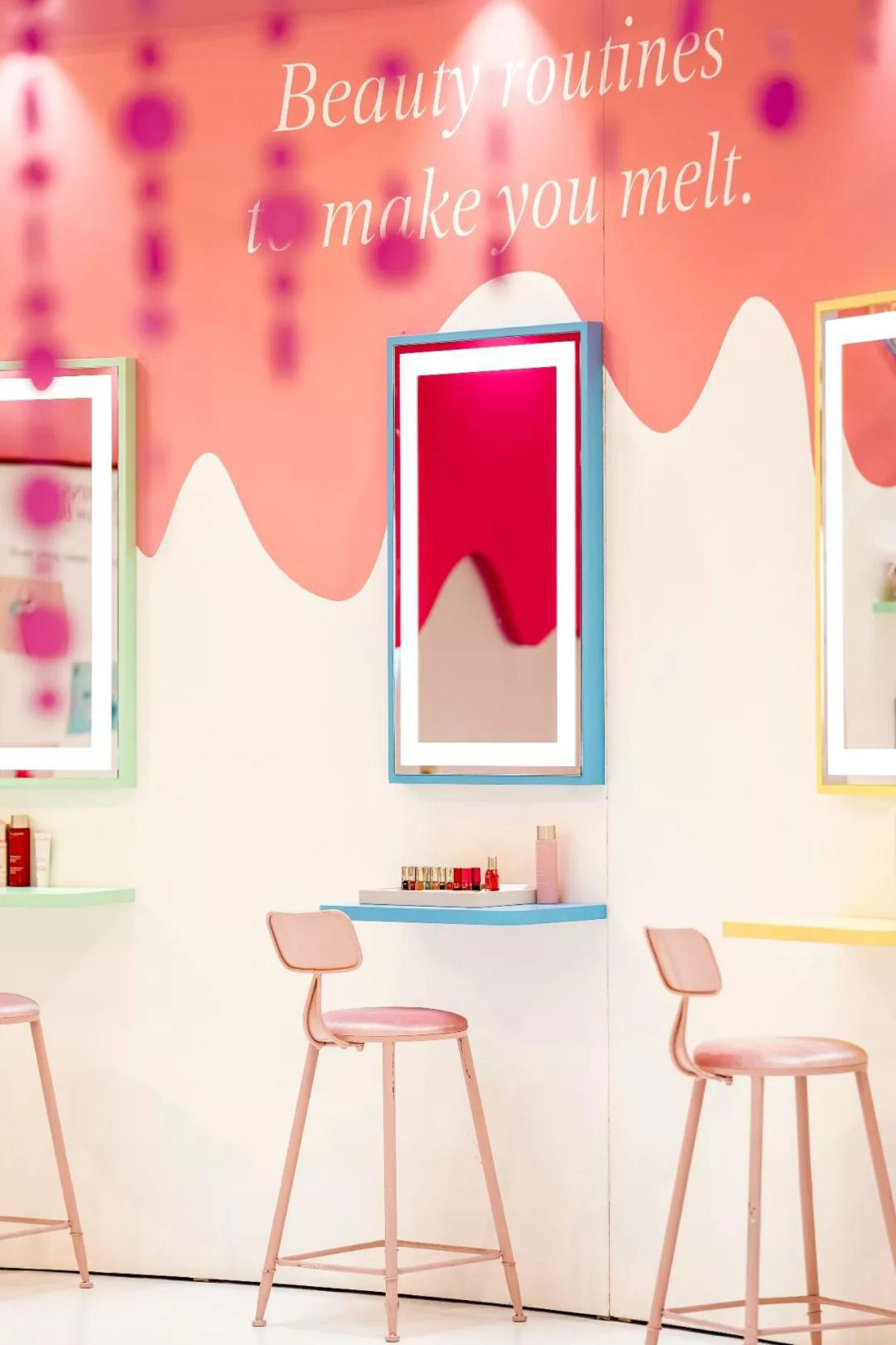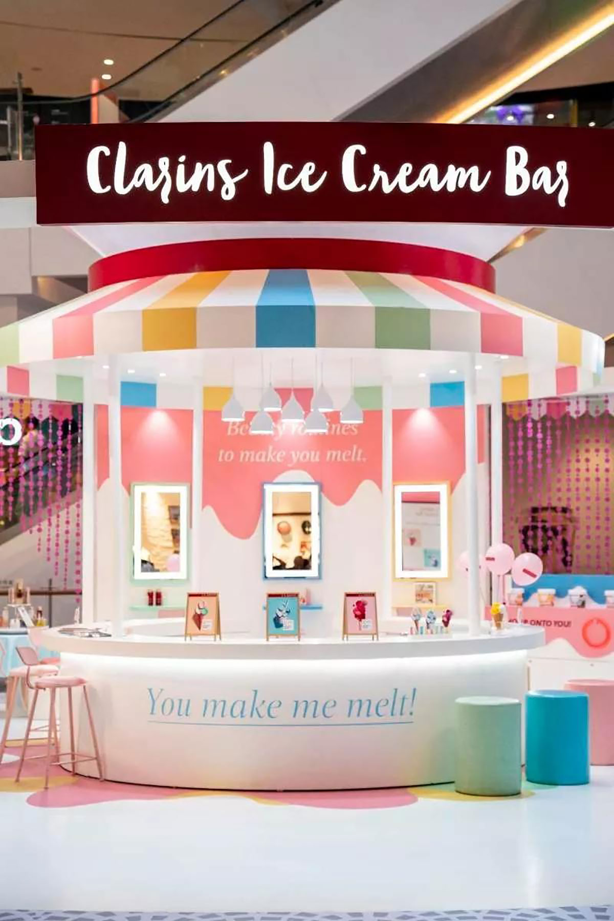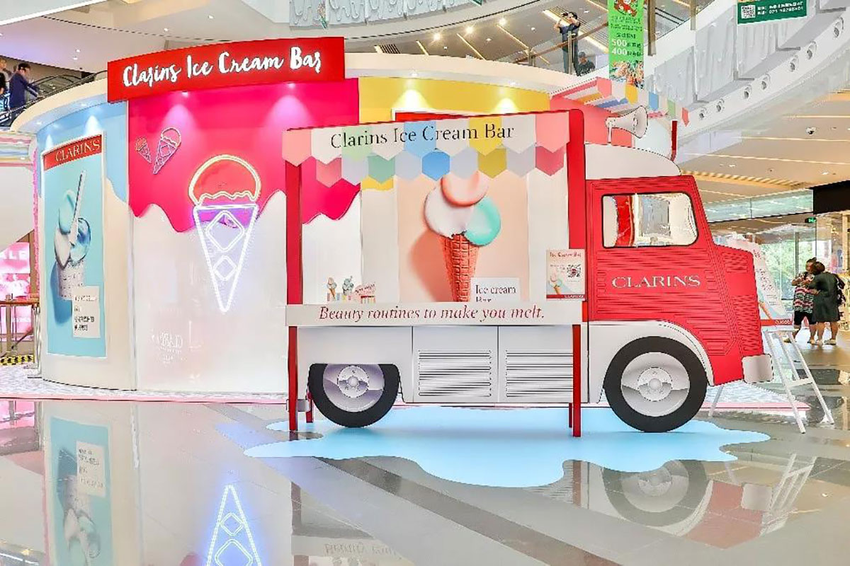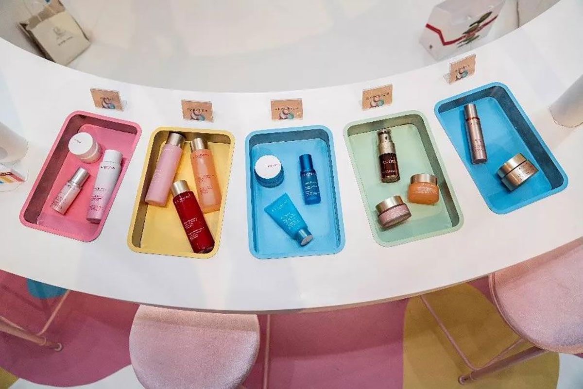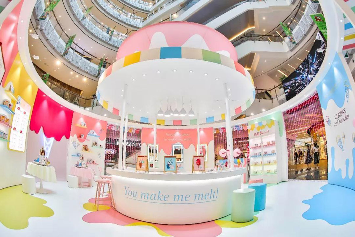 近期,娇韵诗开了间美妆快闪店,整个快闪店策划采用人见人爱的马卡龙色,现场得布置甜蜜又梦幻,冰淇淋般丰富的的配色,显眼得让人从大老远跑远一睹容颜,仿佛来到了童话世界不舍离去,而在产品的陈列上,娇韵诗又花了点小心思,把娇韵诗的产品如冰淇淋般摆放在冰淇淋桶里,每款的颜值也是高得让人只想带回家。整个美妆快闪店还给大家设置了好多互动小游戏,通过各种互动小游戏可以换取相应的小礼品哦。