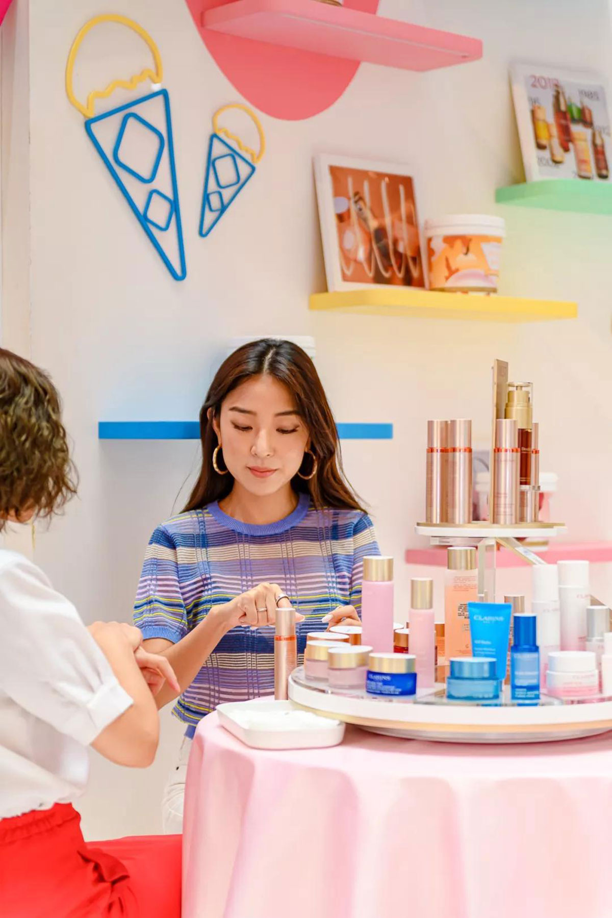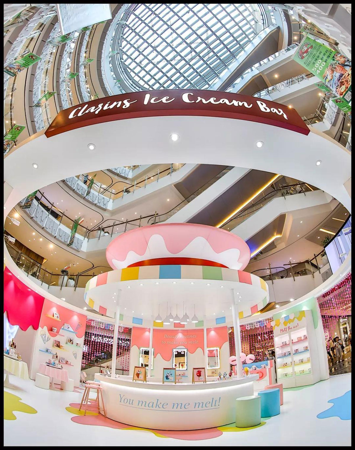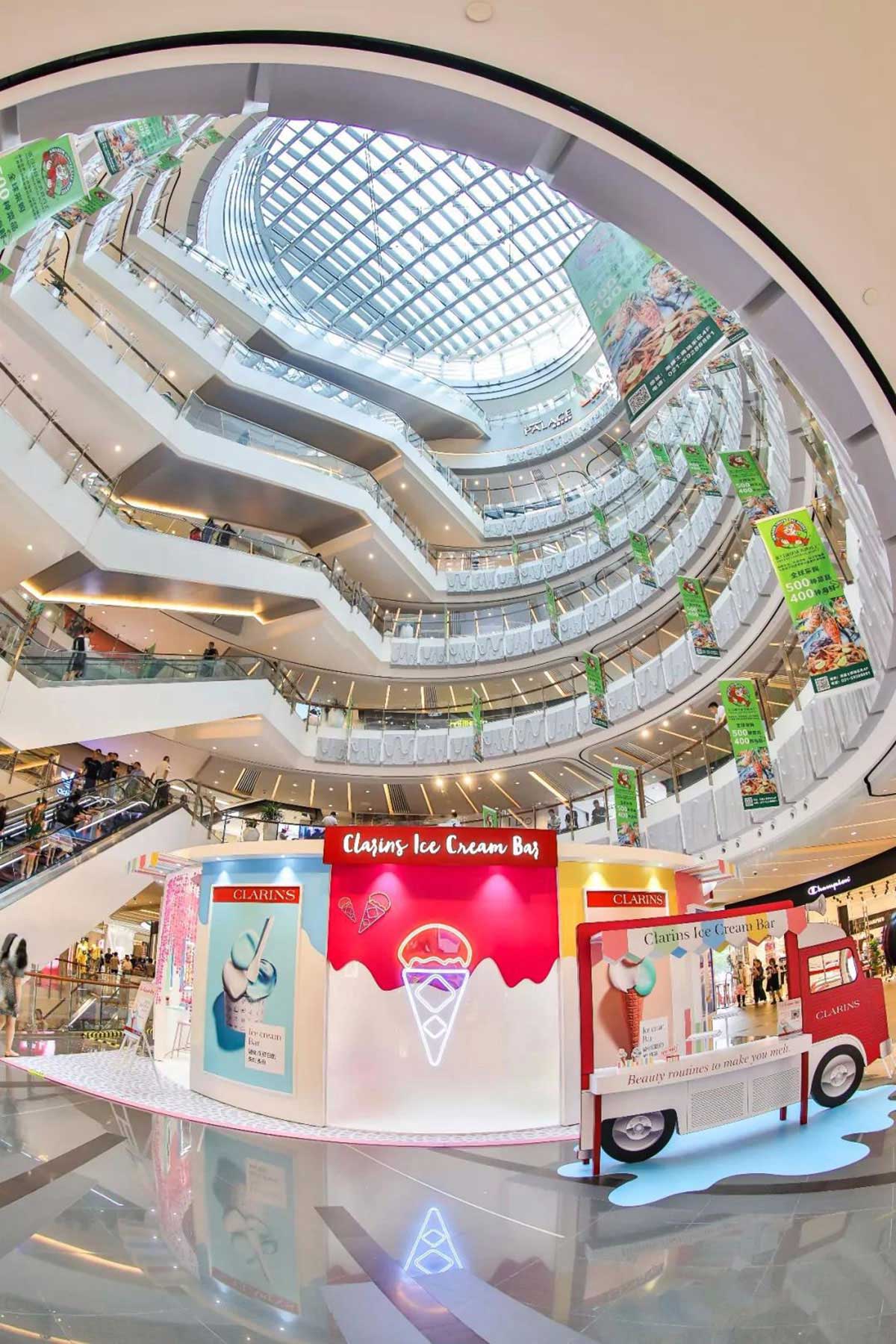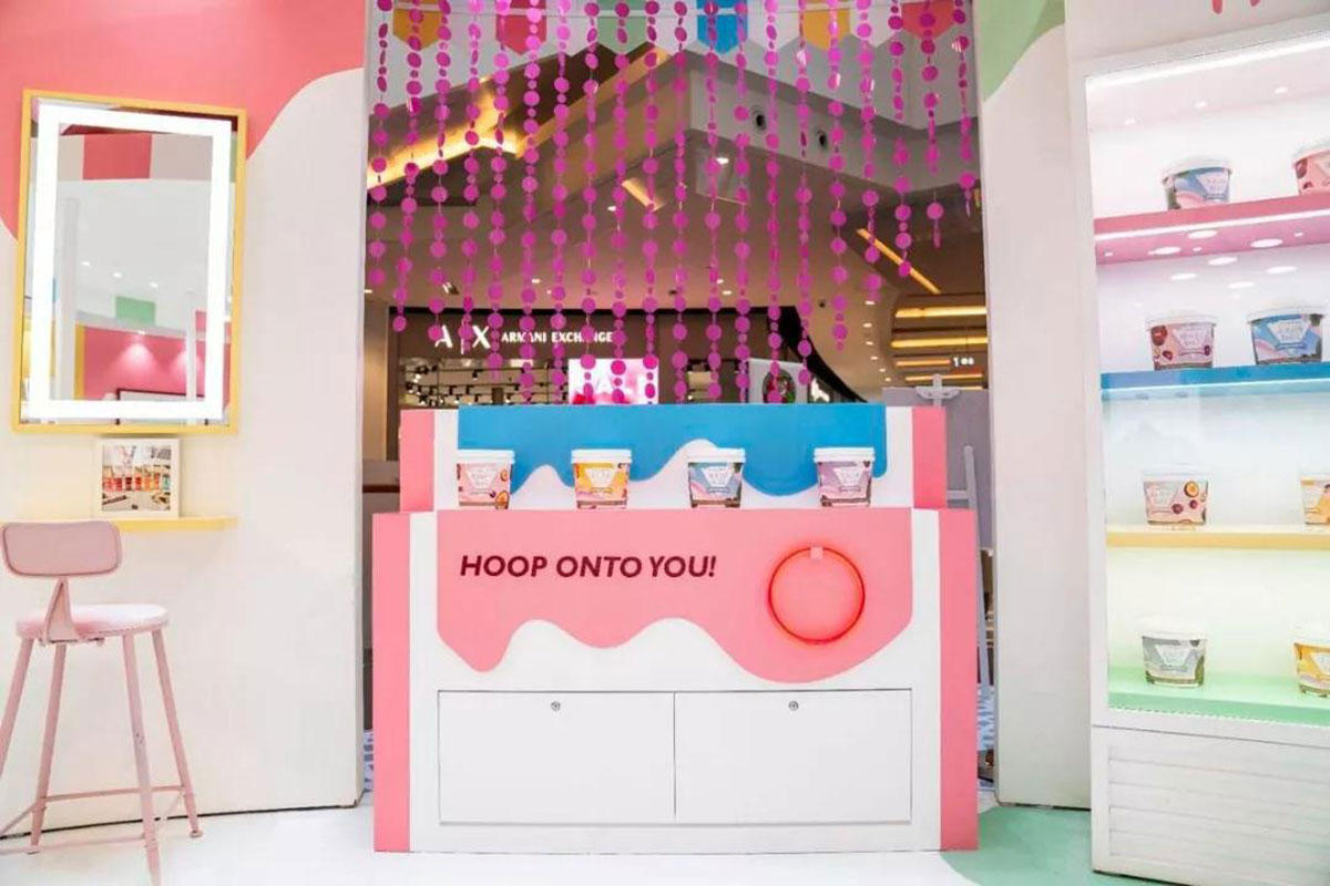 近期,娇韵诗开了间美妆快闪店,整个快闪店策划采用人见人爱的马卡龙色,现场得布置甜蜜又梦幻,冰淇淋般丰富的的配色,显眼得让人从大老远跑远一睹容颜,仿佛来到了童话世界不舍离去,而在产品的陈列上,娇韵诗又花了点小心思,把娇韵诗的产品如冰淇淋般摆放在冰淇淋桶里,每款的颜值也是高得让人只想带回家。整个美妆快闪店还给大家设置了好多互动小游戏,通过各种互动小游戏可以换取相应的小礼品哦。