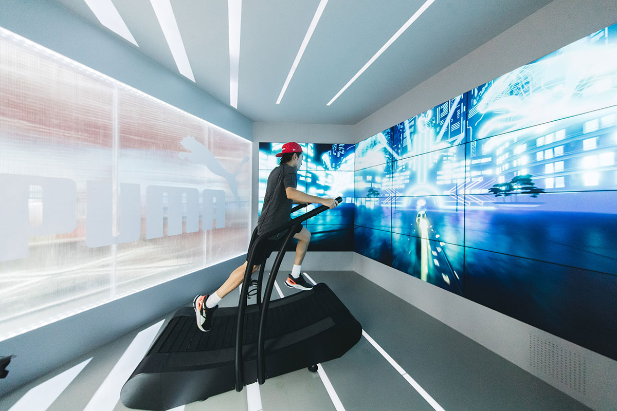 在“管我怎么跑”快闪体验空间中,跑步者不仅可以体验PUMA的最新跑鞋HYBRID Astro,感受技术提升的快感,还可以探索超级互动体验技术带来的身临其境的跑步体验。通过面部识别定制您的个性化美洲狮,加载美洲狮的速度和激情,突破现实和现实中的幻觉,化身可以自由穿越三个幻想空间:城市,浮岛和森林,完成这部分自己的跑步体验。