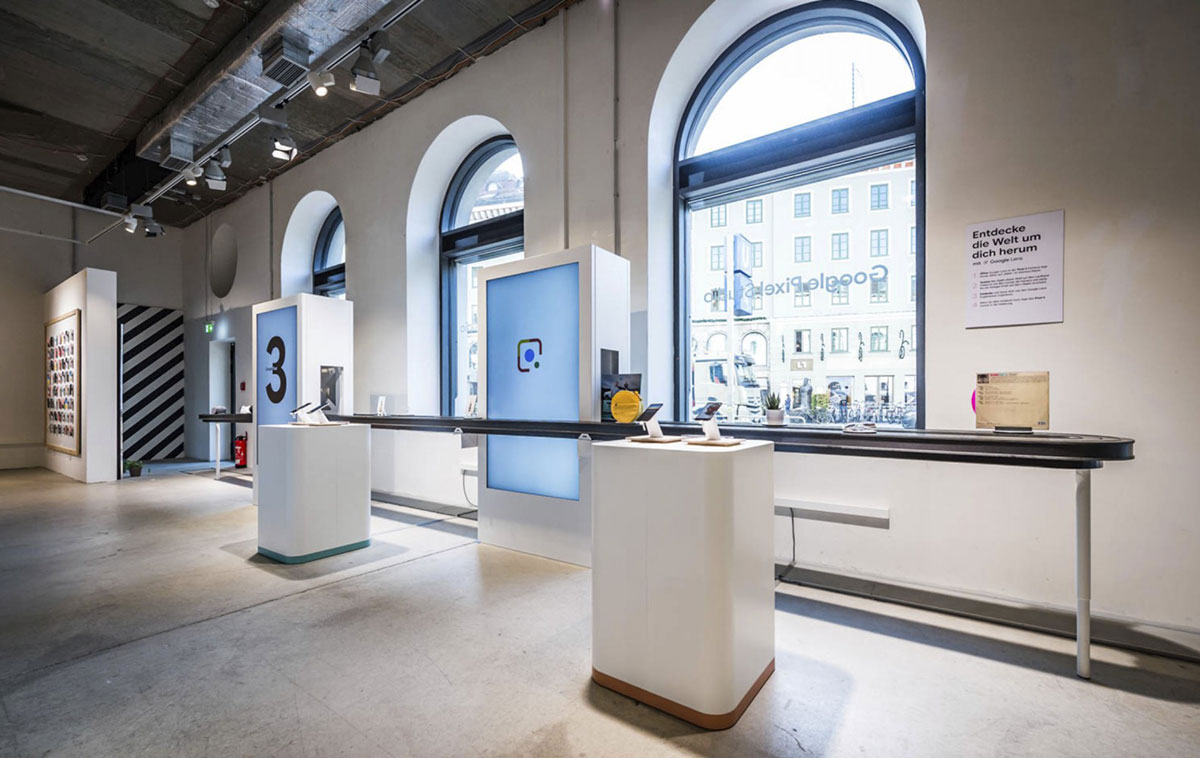 为推出全新的Google Pixel 3智能手机,分别在汉堡,慕尼黑和柏林开设了Pixel 3快闪店,并将Pixel 3放置在一个显眼、突出的位置。 其中,交互式陈列柜和动手操作的展示专门用于测试和尝试手机的可能性。而快闪店的内部更是让人兴奋,其创造了一个振奋人心的场景,一个广泛的支持计划伴随着演示,反复改变了内部的外观,引起了人们的好奇心和注意力, 被邀请的参观者通过手机的创新功能发现并解锁内部装饰空间。 灵活的活动空间也为举办各种活动提供了各种可能性。