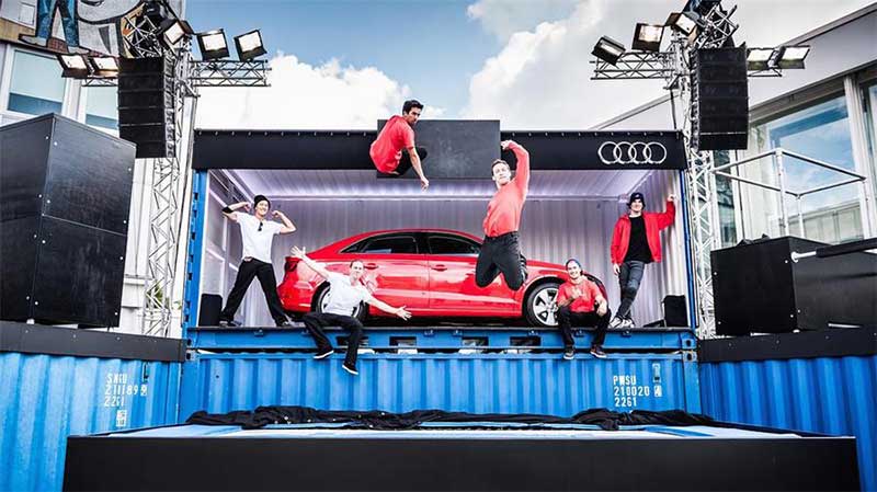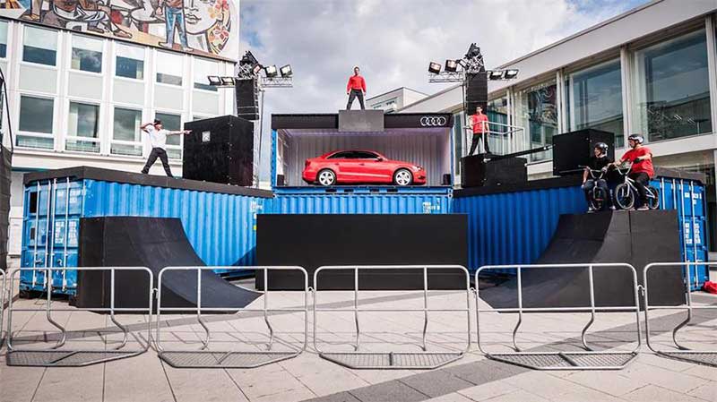 在柏林会议中心,奥迪以发布新的奥迪A3轿车为目的举办了一场快闪店活动,并在活动前面制作了一个独特的临时舞台空间,在繁忙的柏林周末,集街头风格、集装箱和惊心动魄的舞蹈表演于一体,用28场表演吸引了大批观众驻足欣赏了解。