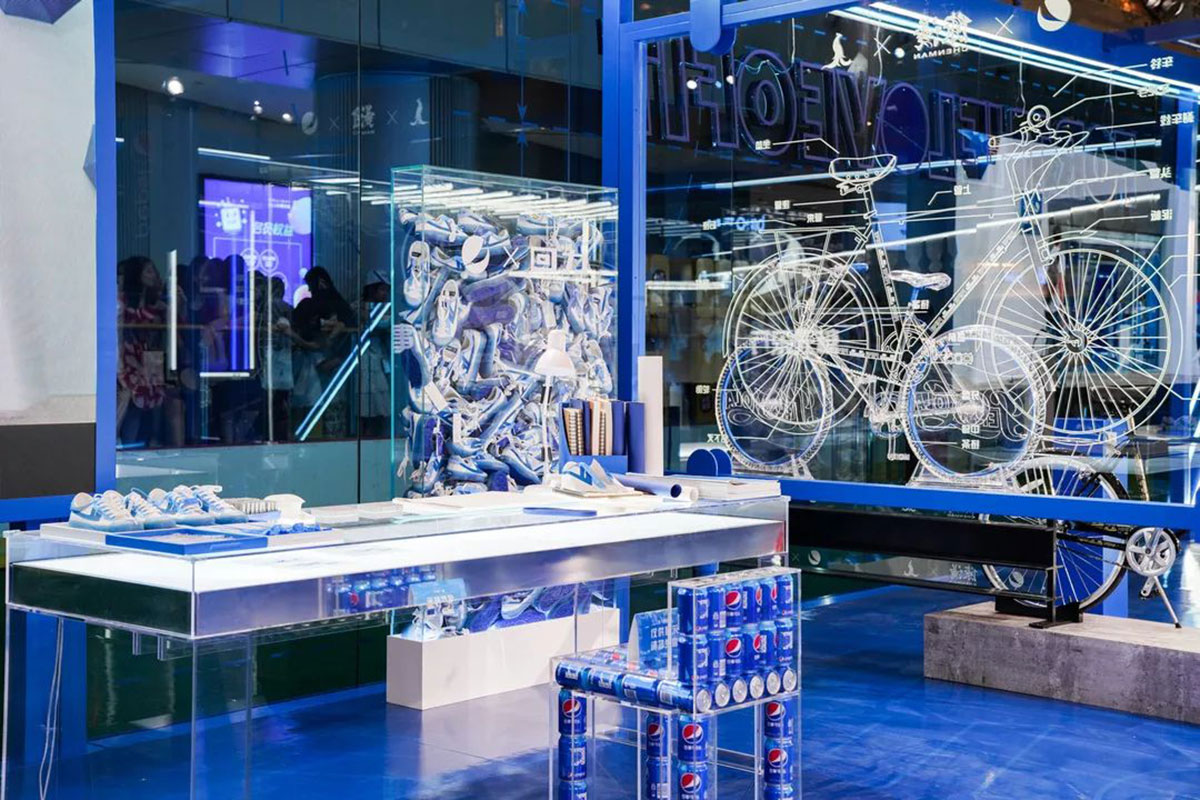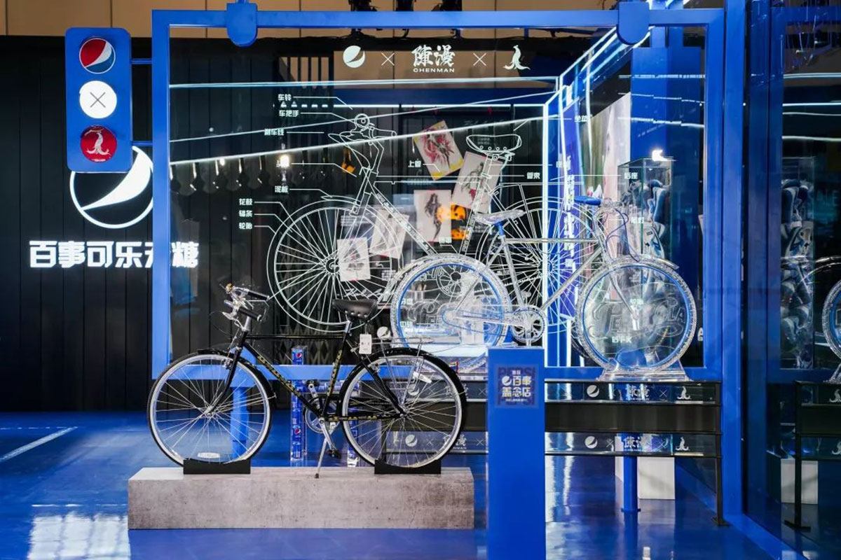全新的百事可乐商店颠覆了之前快闪店的设计逻辑,以三面透明玻璃为主体,完美呈现开放空间,同时以体验为核心,让消费者 感受原创势力的360度角,没有任何死角。 力量即将到来,入口处时尚必备元素拉链和百事可乐拉环的设计意味着您可以从这里解锁各种可能性并开始“与原创联名”的旅程。