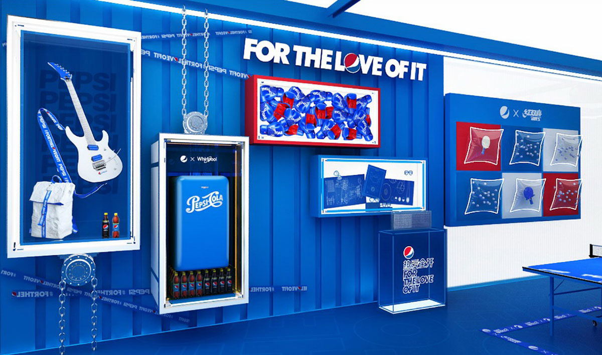 百事可乐一直被定位为“年轻人的可乐”。 面对追逐潮流和个性的年轻人的心理和文化诉求,深入渗透时尚领域和加强品牌联系,百事可乐创造了一个“年轻人喜爱”的多元体验空间“集创箱”, 添加更多互锁的互动细节,让年轻人参与到酷炫的游戏中。