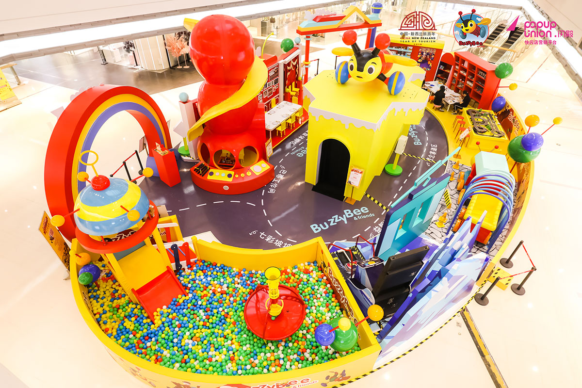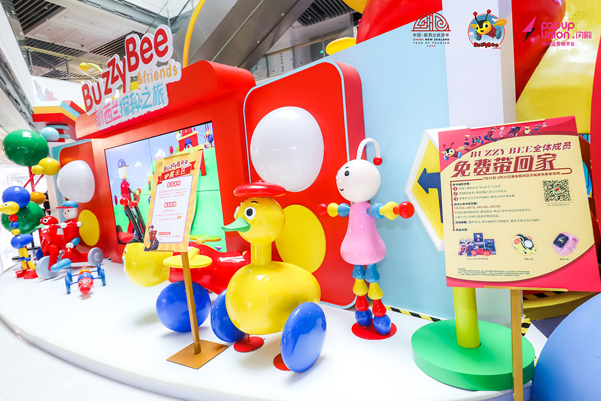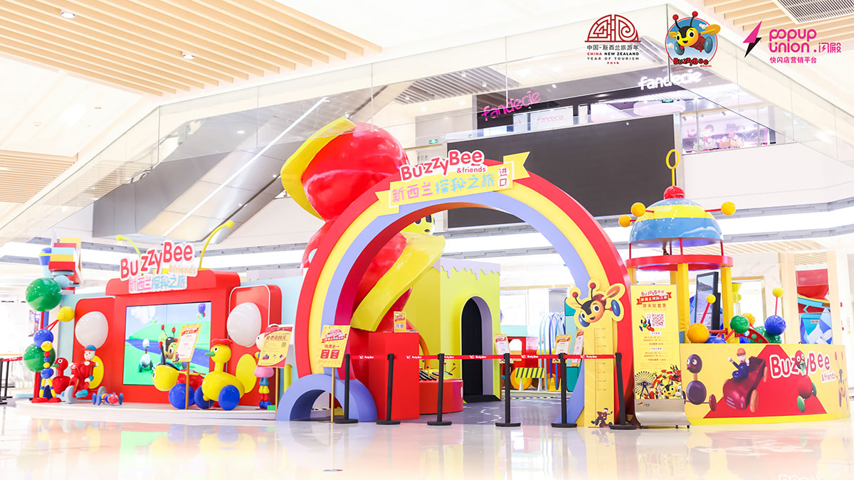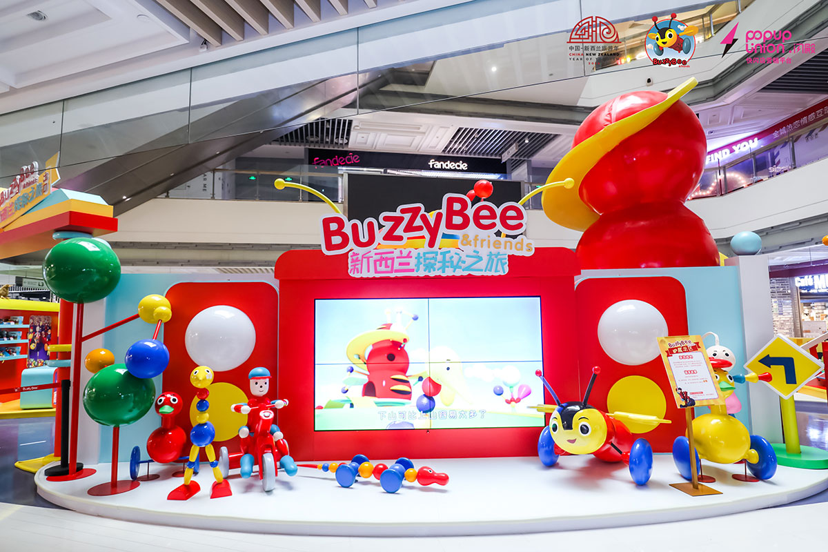 这次,嗡嗡蜂巴帝(BuzzyBee)和它的小伙伴以新西兰国宝级文化IP动画片《嗡嗡蜂巴帝》的人物和故事为核心的主题快闪乐园在上海静安大悦城开幕,诚邀大小朋友一起来一场BuzzyBee新西兰探秘之旅。