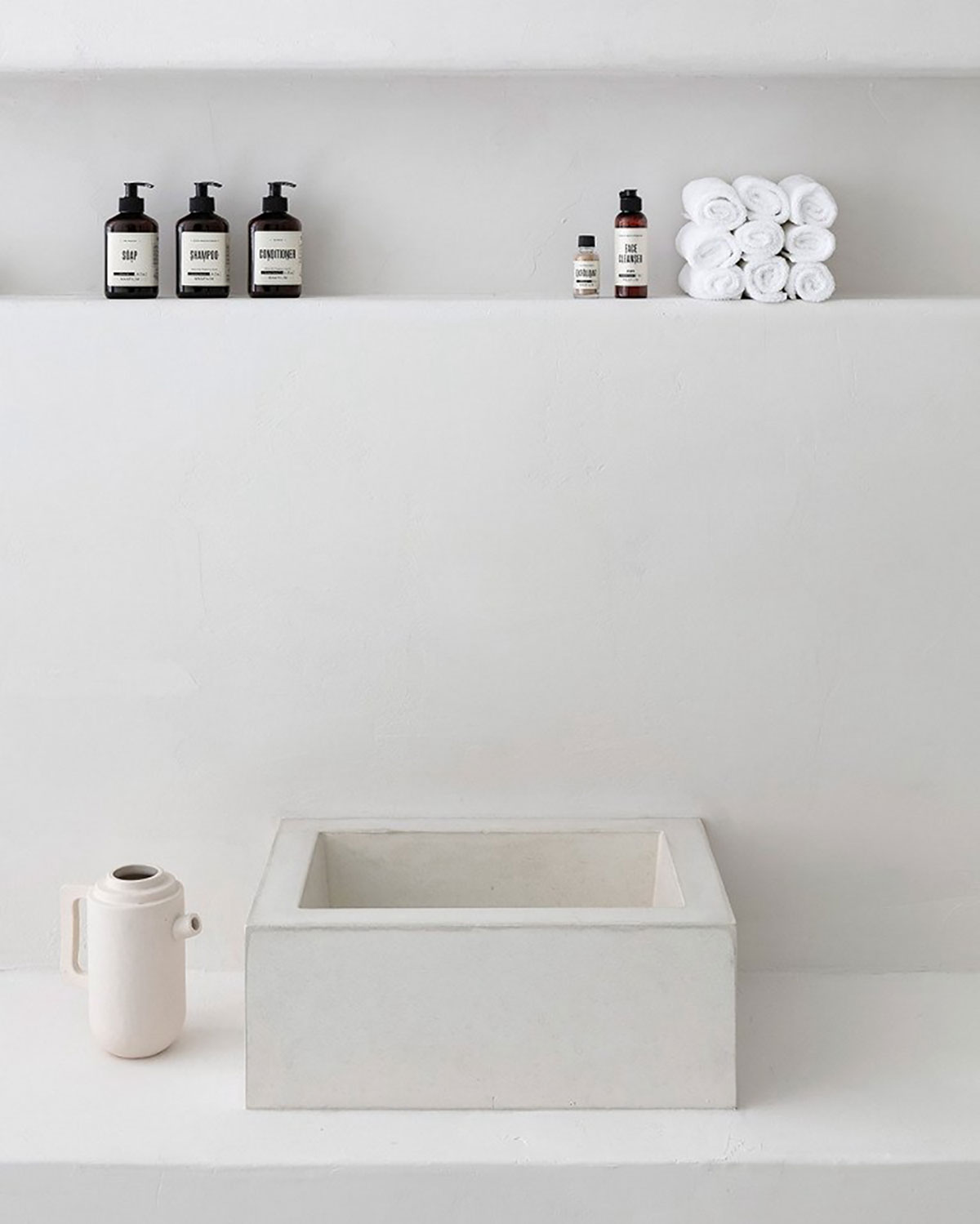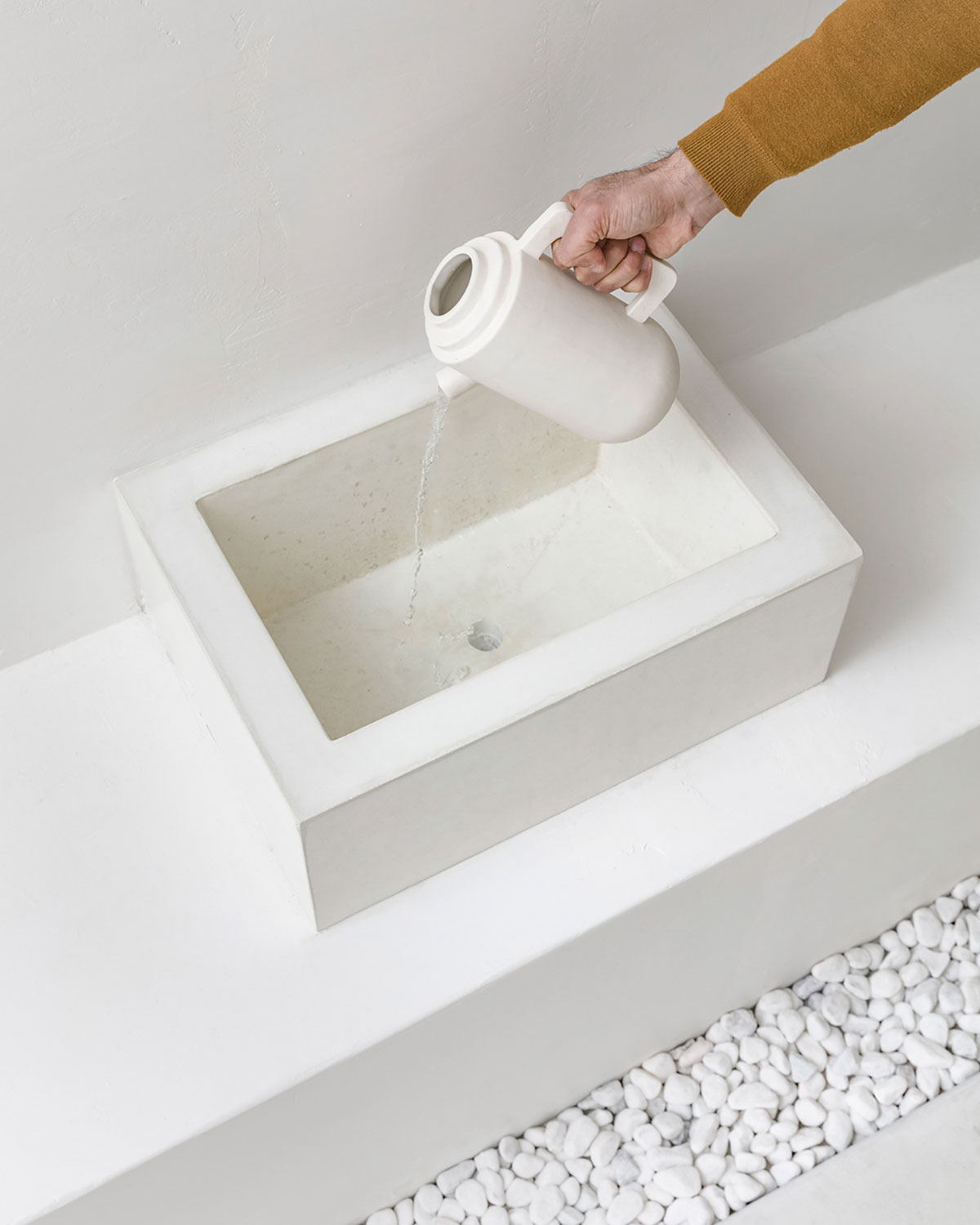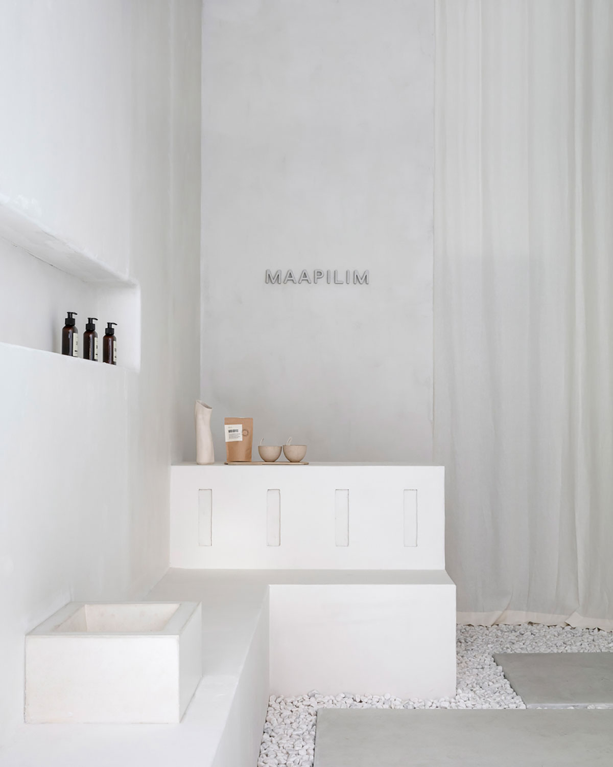 这家快闪商店就是一个微型的希腊花园,拱形的角落、白色鹅卵石和地中海草本植物是此次设计的亮点,其目的是体现该品牌的起源,及其使用来自以色列城市附近地中海的天然成分。这次的快闪商店展示的柔和线条和不完美的形状,给顾客创造了一个平易近人的场景,品牌方希望有一种邀请顾客进入度假模式而不是现代化展示中质朴干净的线条。