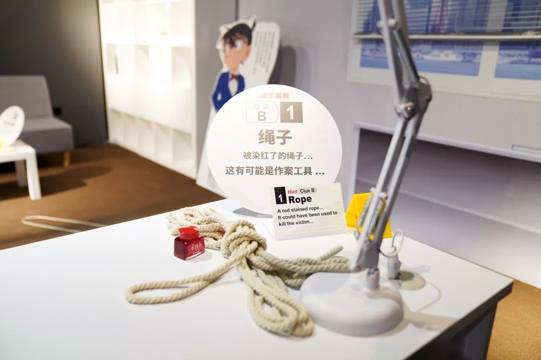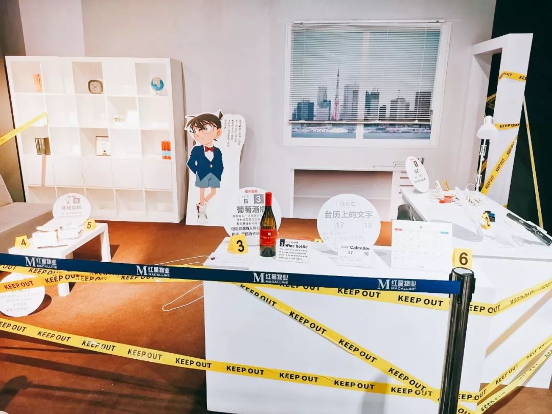 每一位来参战的侦探们,都可以在入口处凭票领取柯南主题眼镜一副,戴上它,“变身”成柯南开始探案吧!当然,探案开始前,各位侦探需要选择是和柯南&安室一组,或者是和柯南&小兰一组,然后领取相应的侦探手册,共同展开调查!根据搭档的不同,体验的内容也会有所不同。此次主题展览展区分为收集证据的“现场取证区”、寻找线索的“线索探听区”以及科学鉴定证物的“科学实验区”,各位侦探可以把收集到的证据,通过科学方法进行鉴定,来发现本案的真面目。