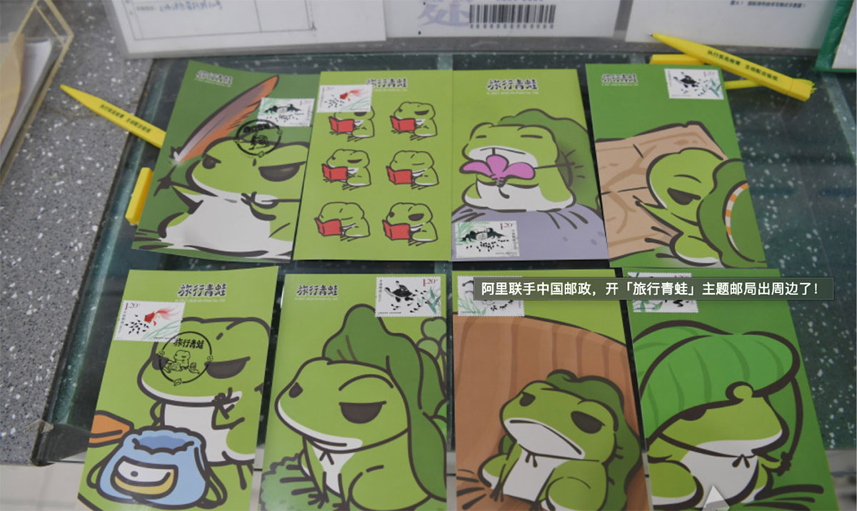 自阿里巴巴获得Hit-Point旅行青蛙授权,在手机淘宝内置了《旅行青蛙·中国之旅》小游戏之后,这次又联手中国邮政,直接在上海的徐汇支局、浦东蓝村路支局开了旅游青蛙主题邮局。