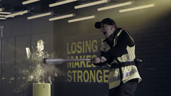 作为体育类中弱势品牌,瑞典运动品牌Bjornborg认为自己需要与用户建立情感链接。为此,他们搞了一间类似的“疯狂健身房”快闪式的商店,平时有压力的工作人员可以到这里打砸东西、大力关门、掀翻桌子等,以此来释放压力和负面情绪,放松自己,让释放的方式让自己重新迎接明天的挑战。
