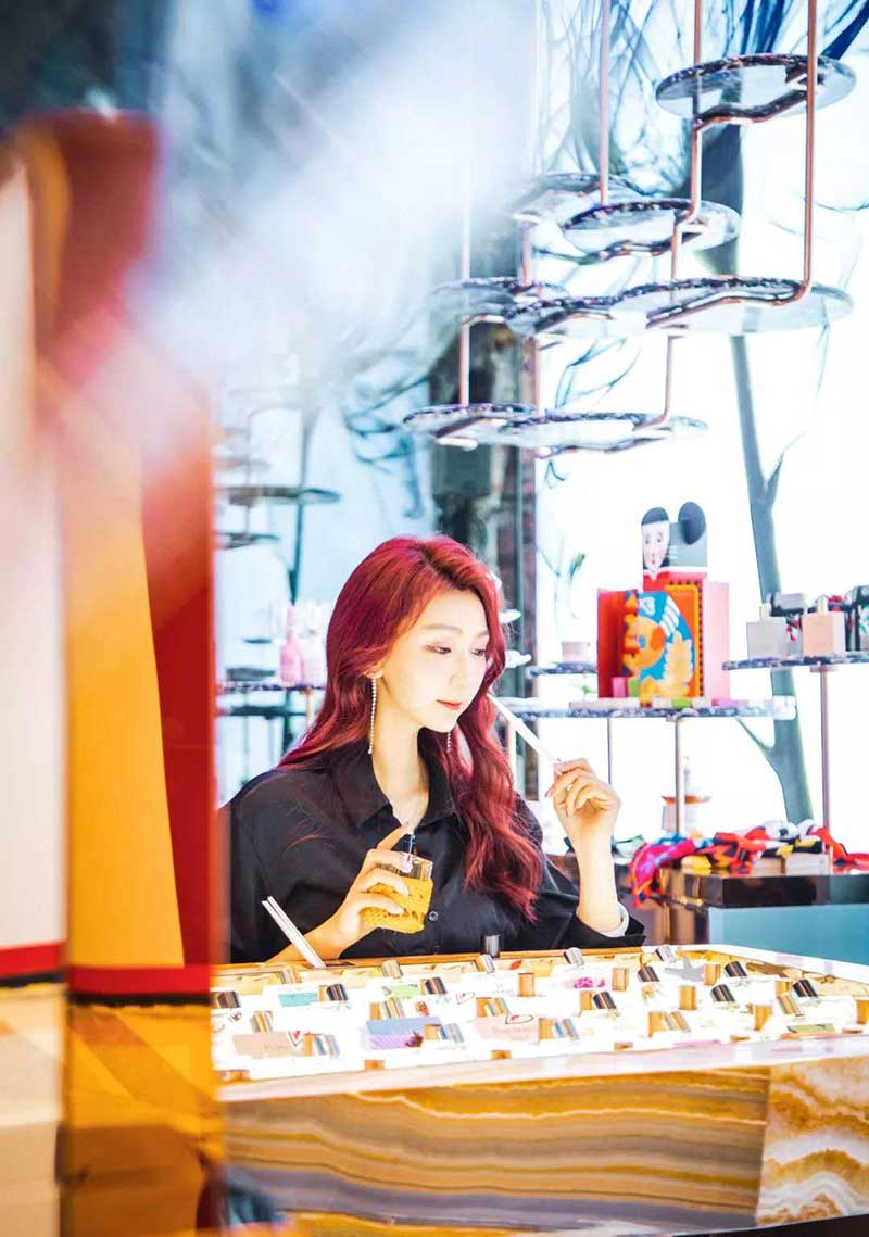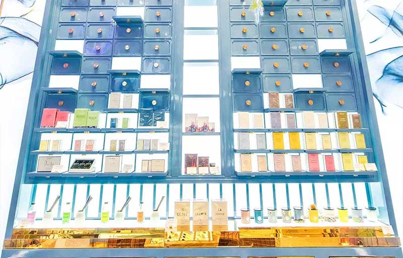 奢华、闪耀的金属光泽感。Miller Harris在城市中心精心打造的梦幻香氛殿堂,每一个细节都充满了艺术感,自然清新的设计与这座宫殿相得益彰,亮眼的绿植鲜花垂落而下,还带着满满的香气袭来,简直就是每个少女的梦幻,梦境与现实在这里完美碰撞,这波操作肯定要给100分。