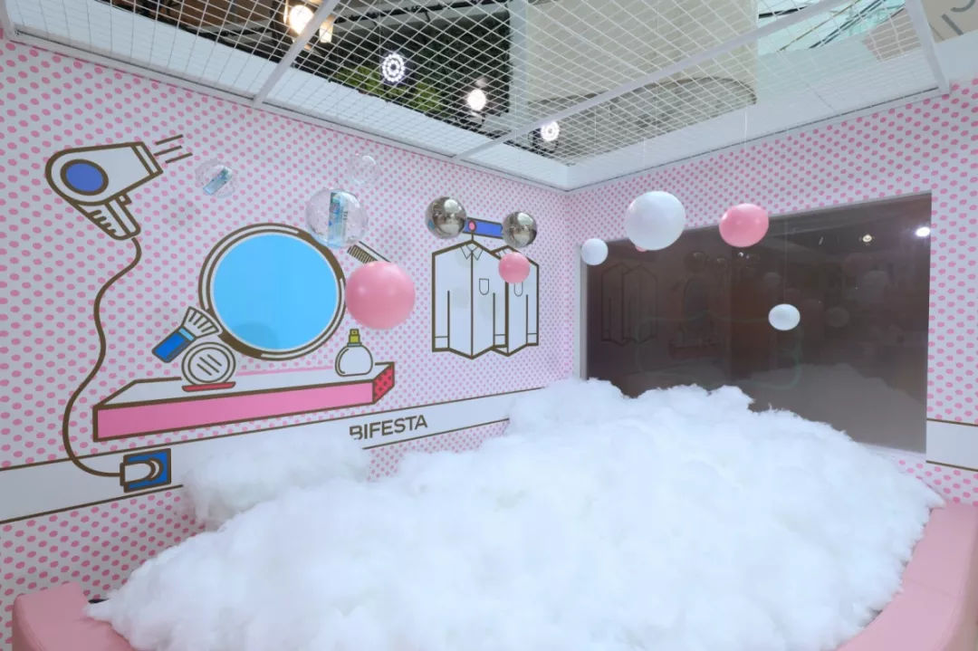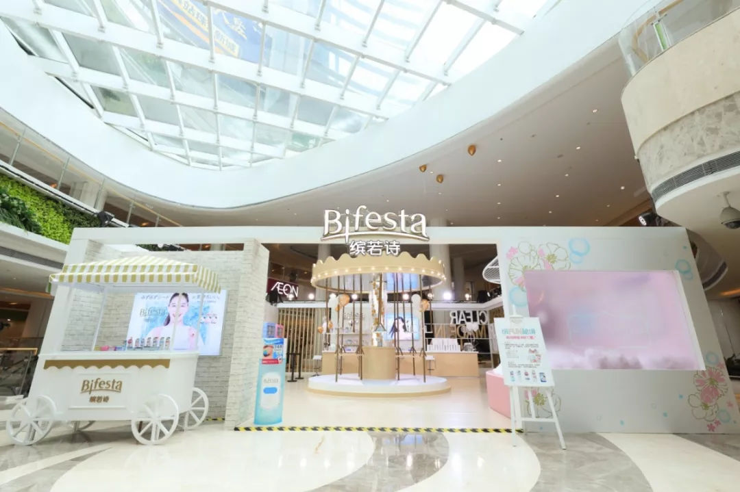 近期,漫丹公司旗下的卸妆洁肤品牌Bifesta缤若诗在广州3号线上的高德置地广场中庭打造了一个超甜超浪漫的快闪活动。