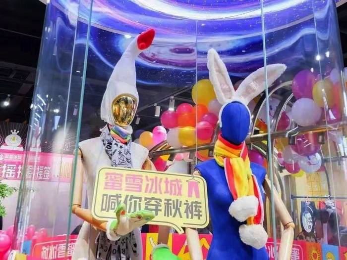 #蜜雪冰城喊你穿秋裤#活动,线下在郑州国贸360和文化路英才街举办快闪店,吸引各路潮人大V纷纷打卡。现场玩弄各种秋裤,创意无上/下限。快闪店游戏设置:秋裤的前世今生,扫码答题赢限量秋裤;DIY你的专属秋裤,搭配独一无二创意穿法;秋裤摇摇签,摇得越虔诚,签语越是灵;抓球球机,抓获冬日暖暖小幸运;秋裤大市场,搜罗你喜欢的保暖小物件……想怎么玩,全靠脑洞开呀。