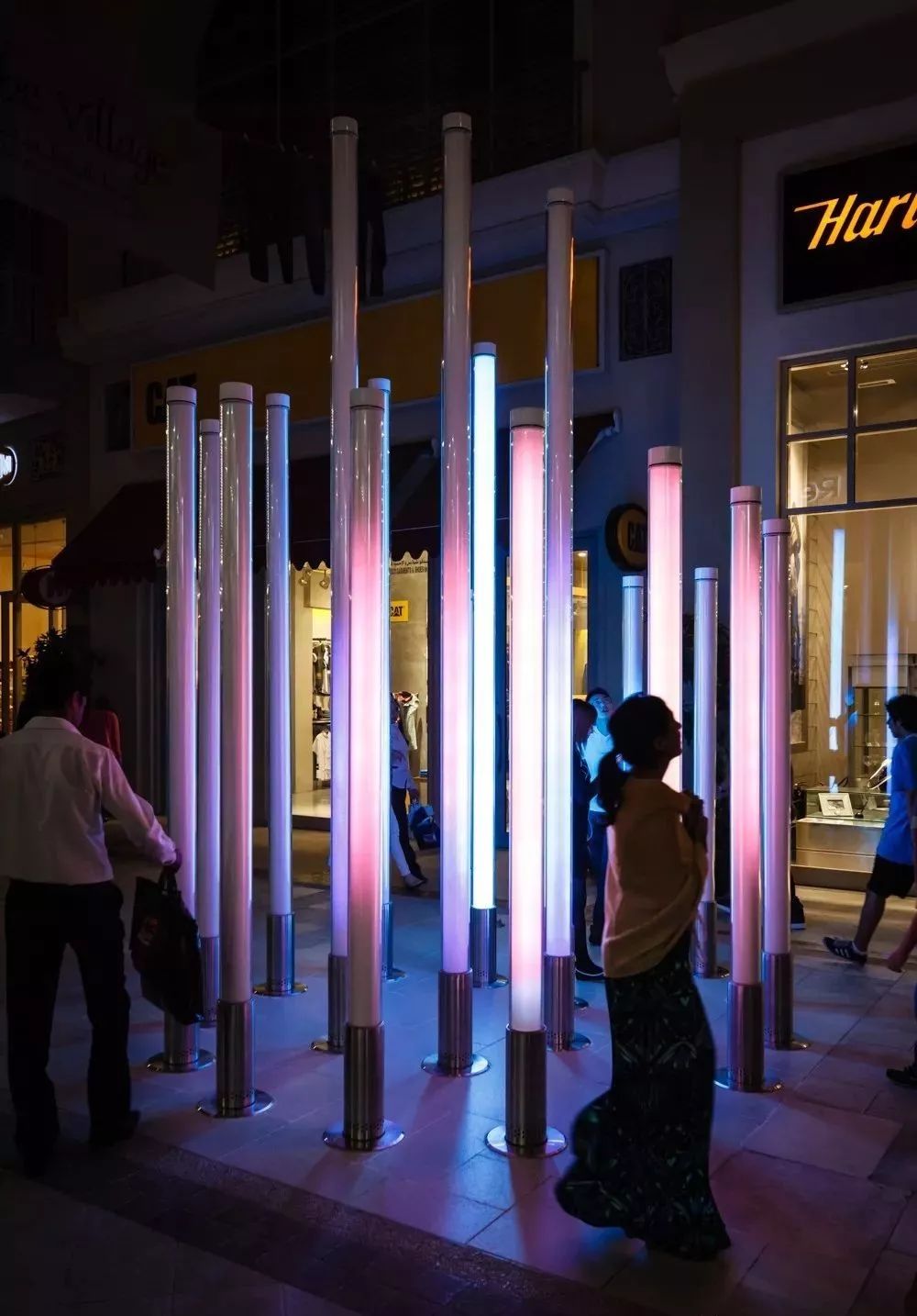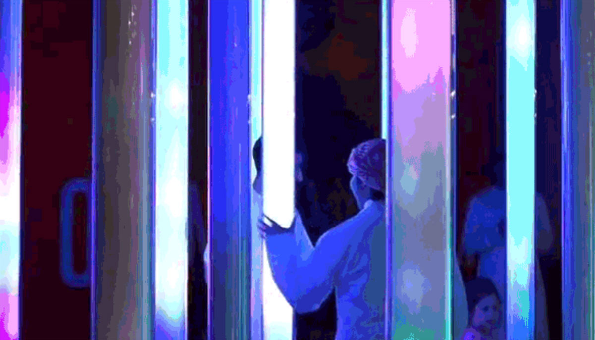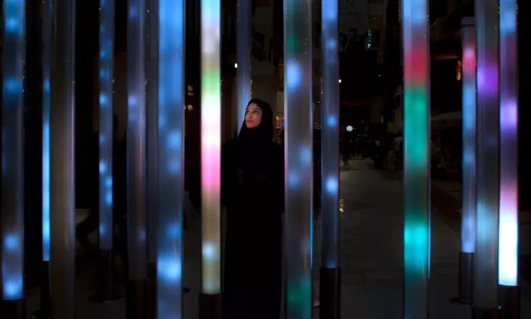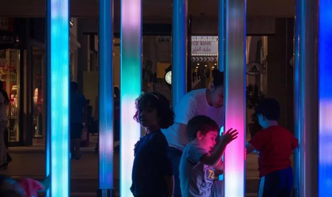 这是由数只螺旋状排列的玻璃灯管组成,通过灯光和声音效果来响应人的触摸。灯管里集合了各式各样种类繁多的鸟叫声,每一根灯管都大不相同。不同的接触方式会触发对应的声音。以缓慢的速度上下滑动,会产生和谐的动态混合效果,而更快速的滑动会引发一束光发射至顶端并转移至相邻灯柱,产生移动声源的错觉。