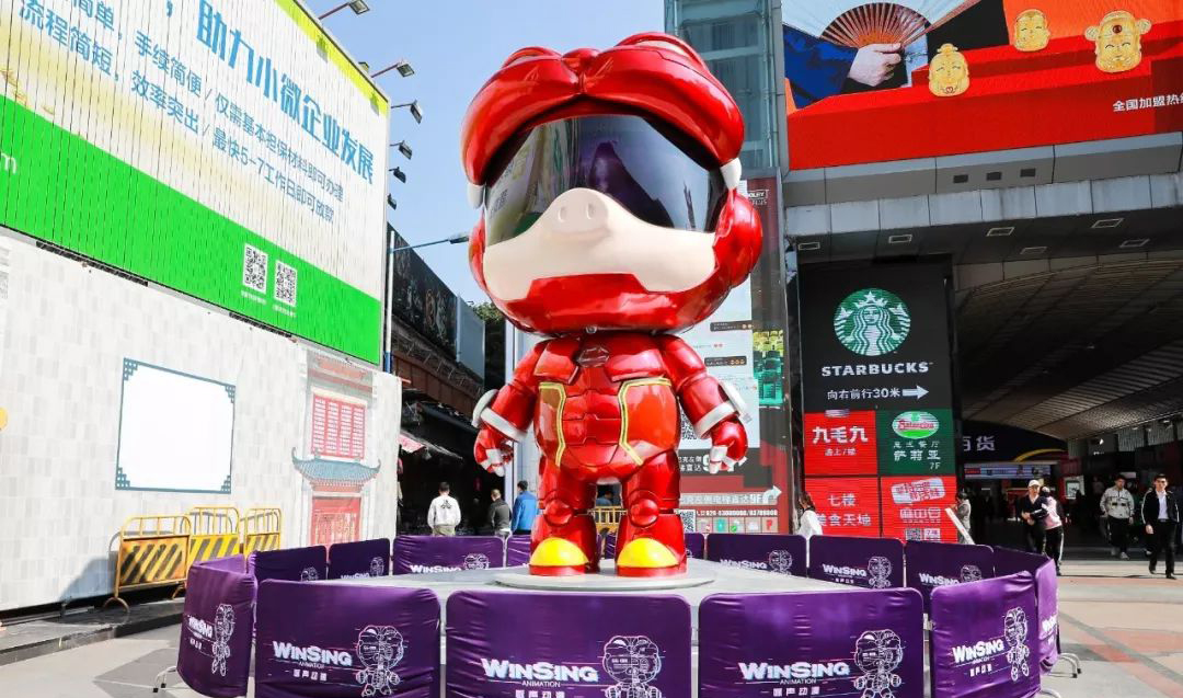 以“国潮新地标,广府新次元”为主题的大型互动沉浸式创意户外场景空间——“铁人猪猪侠”以及猪猪侠未来仓快闪店,隆重亮相第二届广州北京路粤港澳大湾区文化IP秀。咏声动漫深度挖掘IP价值点及文化产业的多维度联动,结合游客场景互动与消费新体验等多方位打造出猪猪侠的大型装置,使明星IP赋能促进本土文旅产业发展,有效助力北京路步行街的升级改造,让千年商都焕发全新活力。