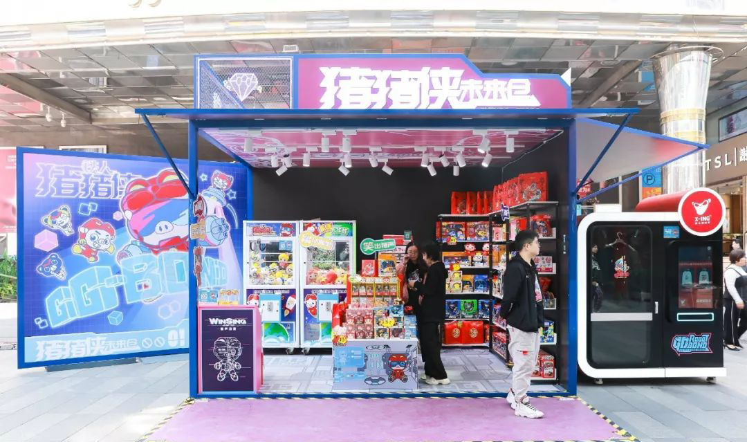 同期配置的综合玩、乐、购元素的沉浸式整合体验区“猪猪侠未来仓快闪店”,是咏声动漫精心打造的线上与线下消费场景融合科技新零售的文旅户外场景,通过结合时下热门的IP+快闪店模式,以半开放式集装箱装置风格进行布置,店内提供智能科技的无人造衣机、多款品类的IP衍生周边及好玩吸睛的网红娃娃机等消费服务,为市民游客提供多元化的文化娱乐体验,推进北京路步行街商圈消费升级。