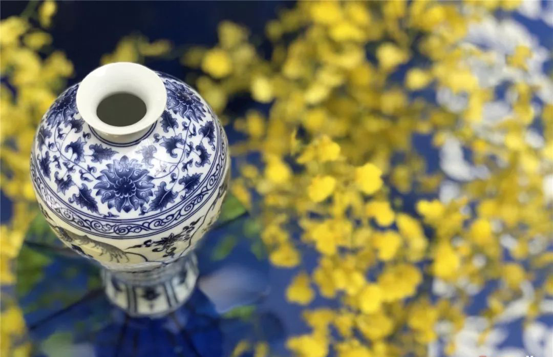 中青花,西油画,青花瓷与西式艺术的交响乐章,风琴般的艺术造型让人沉浸在美妙的乐章里,每一朵跳舞兰都是活灵活现的音乐精灵。